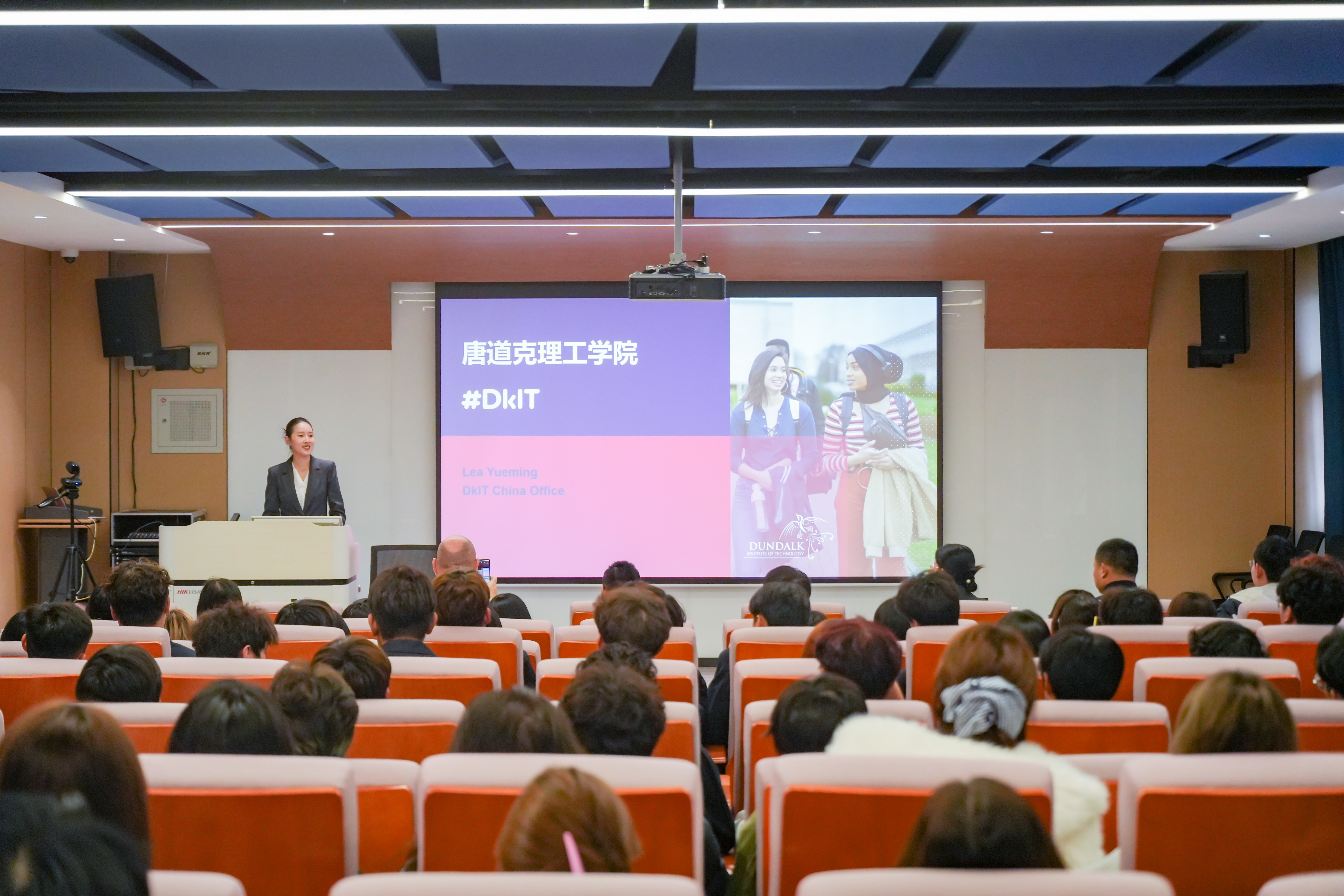 Lea老师首先发言,她详细介绍了爱尔兰唐道克理工学院的办学特色、合作项目内容以及给学生的未来学习规划,帮助新生对即将开启的国际化学习生涯有了更清晰的认识。