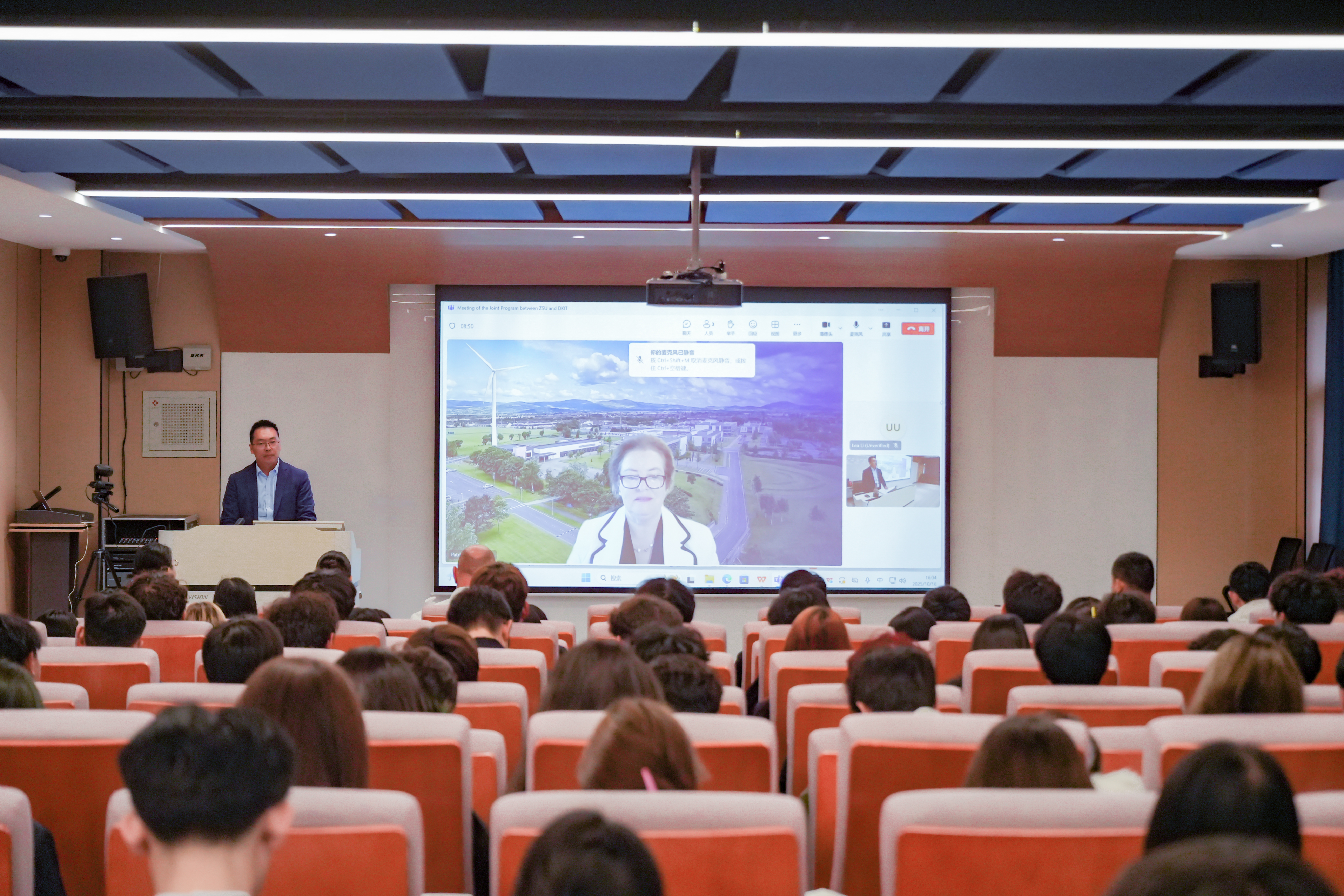随后,帕特里夏院长发言,她首先代表爱尔兰唐道克理工学院表达了对新生的欢迎与期待,并表示,目前已有来自升达学院学生在唐道克理工学院就读,即将以优异成绩获得学位。爱尔兰唐道克理工学院非常期待在未来,迎接更多来自我校的优秀学子。她还展望了两校合作的广阔前景,指出DkIT正致力于深化两校的战略合作,并提出了推动教师互访、学生交流以及探索跨国教育等具体合作方向,希望将以此为基础,作为双方共同迈出的下一步。