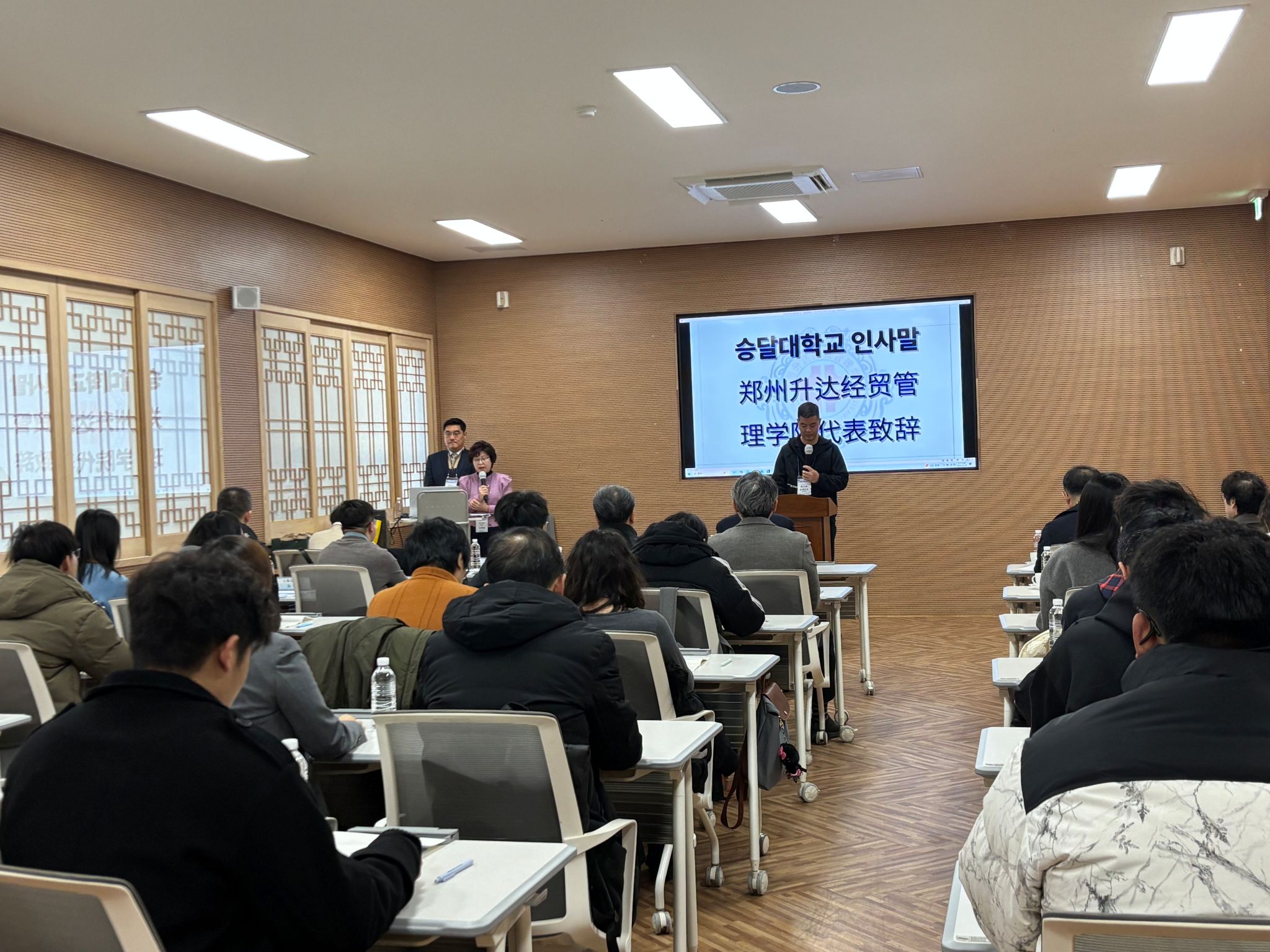 本次研修团成员涵盖体育学院、信工学院、商学院、会计学院等多个学院和部门,由体育学院党委书记韩炎涛担任团长,信工学院党委书记钟江鸽担任副团长。抵达韩国后,南部大学总长赵准范出席欢迎见面会,对我校师生的到来表示热烈欢迎,并期待两校合作不断结出硕果。