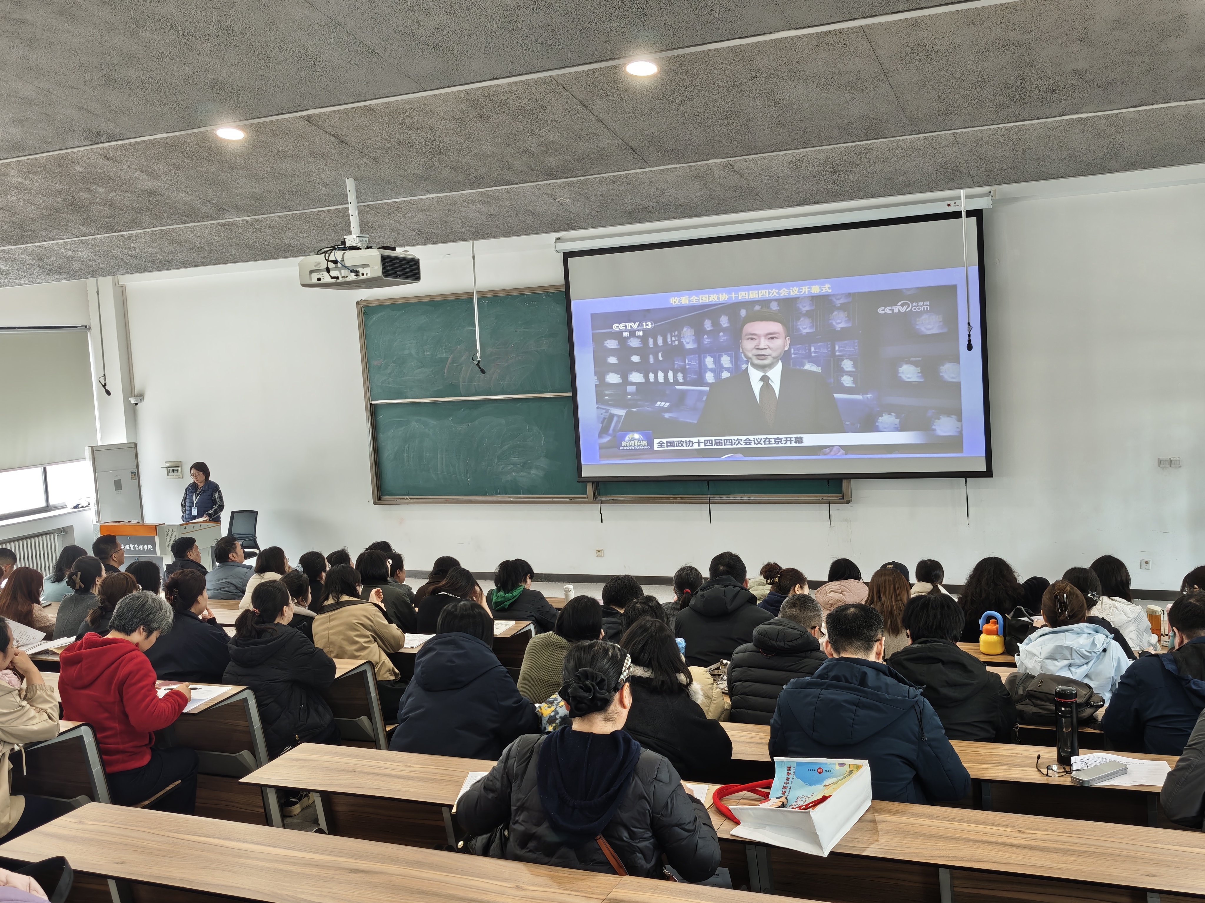 为深入学习贯彻全国两会精神,加强教职工思想政治引领,3 月 12 日,学院组织全体教职工召开政治理论学习会议,集中观看全国政协十四届四次会议开幕会。学院全体教职工参加学习。