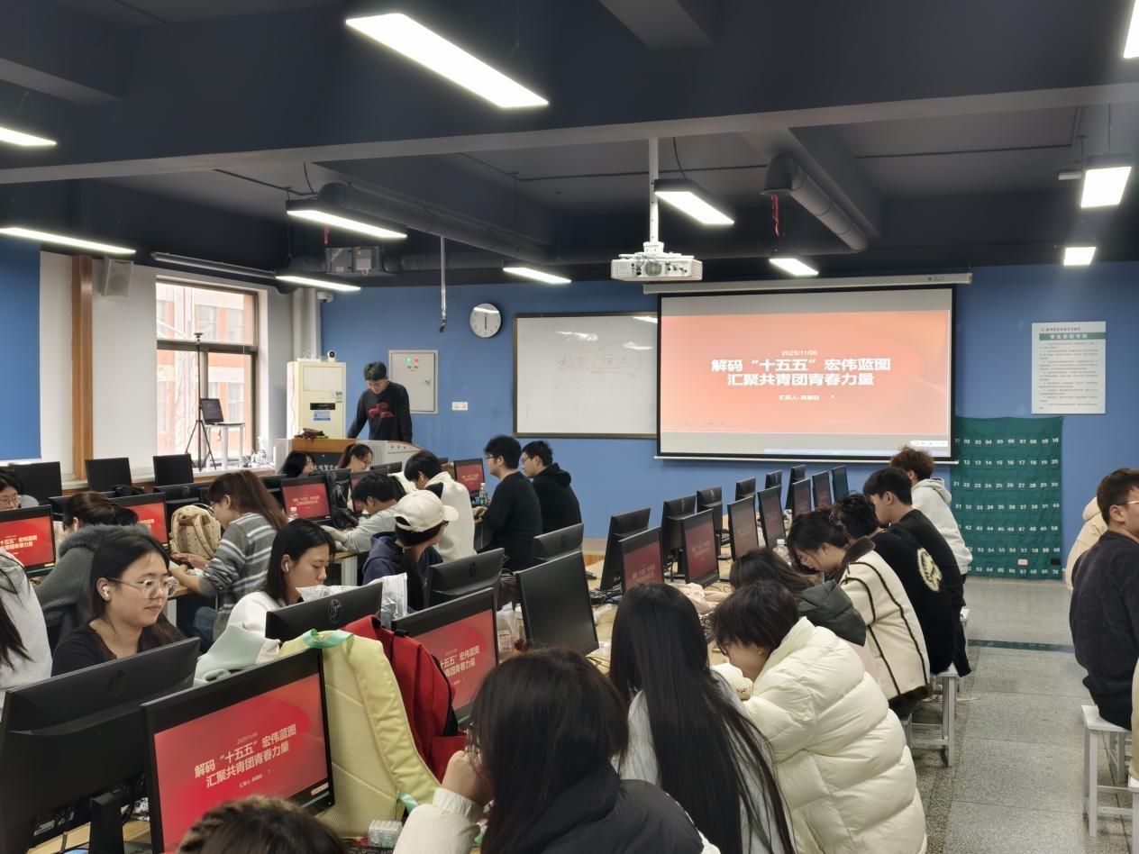 为引导青年学子深入学习国家“十五五”规划精神,增强时代使命感与责任感,11月7日,金融贸易学院24级金融学本科一班于时金楼219教室成功举办“解码‘十五五’,汇聚共青团青春力量”主题宣讲会。