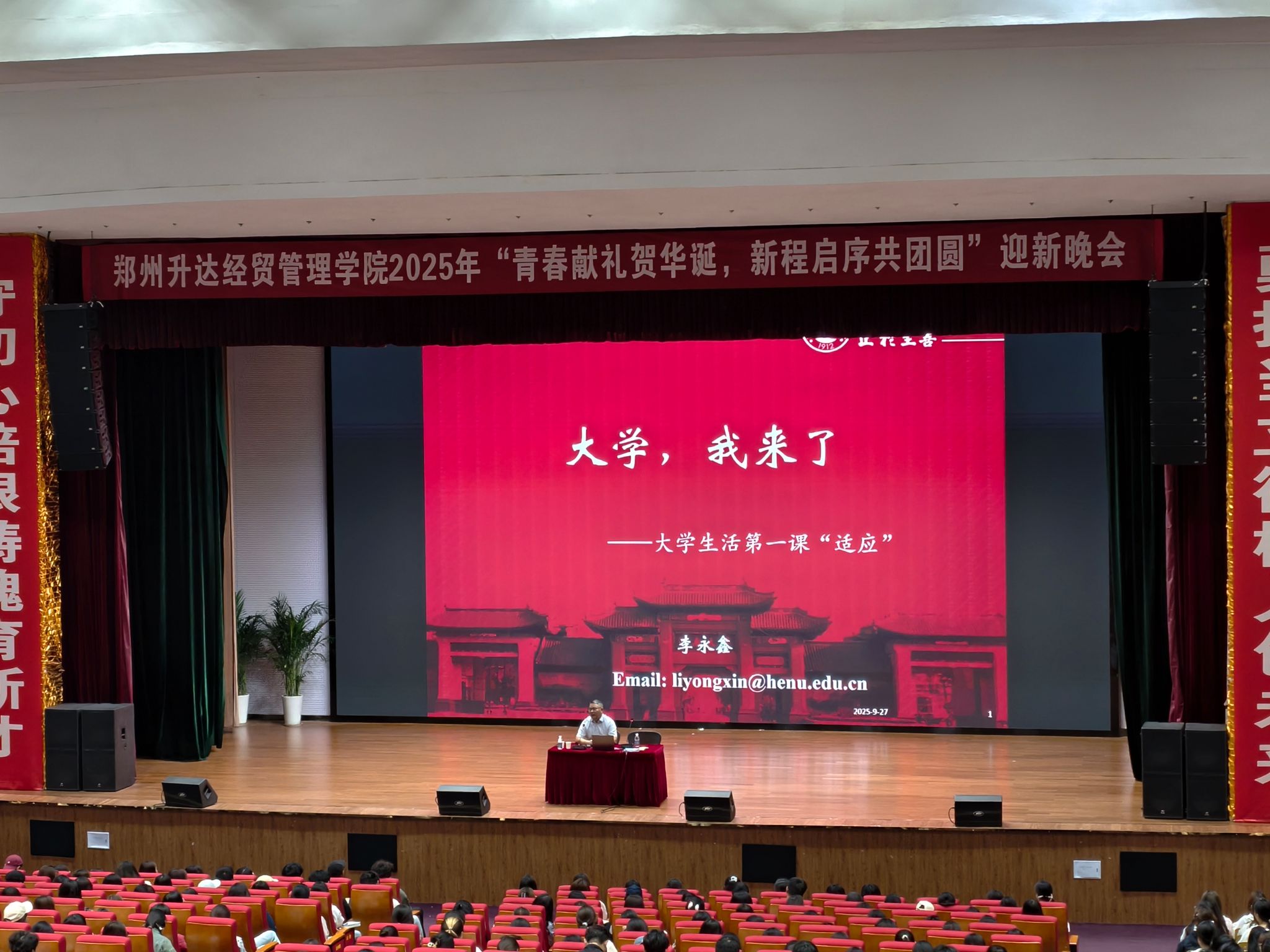 为帮助2025级新生尽快适应大学生活,提升心理调适能力,9月27日上午,郑州升达经贸管理学院心理健康教育中心特邀河南大学李永鑫教授在我校思源会馆为全体新生开展题为《大学,我来了——大学生活第一课“适应”》的专题讲座。