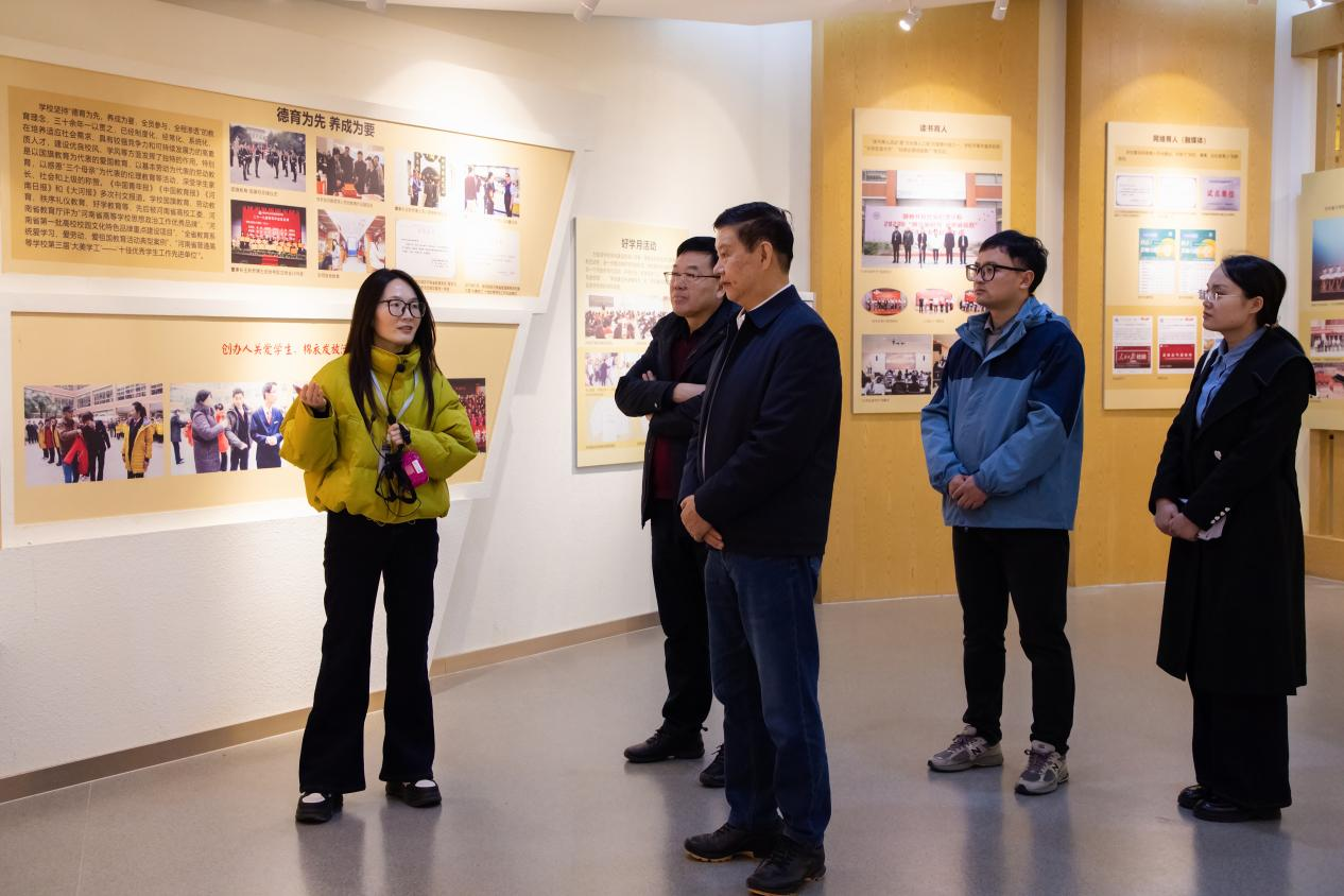 岳朝军一行先后参观了学校校史馆、新图书馆等场所。参观过程中,嘉宾们详细了解了学校的办学历史、文化特色及发展成果。