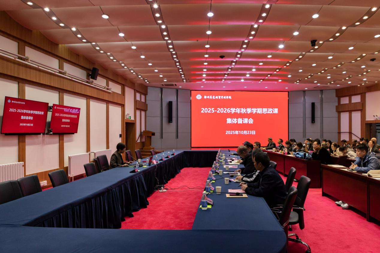 为落实教育部《关于开展2025-2026学年高校思政课课堂教学提升行动的通知》及省教育厅相关文件精神,10月23日下午,我校在国际会议厅开展2025-2026学年秋季学期思政课集体备课会。会议邀请郑州轻工业大学马克思主义学院院长闻英教授莅临指导。校党委副书记、副校长张金安等校领导,校党委办公室、组织部、宣传部、学工部,教务处等职能部门主管以及马克思主义学院全体专兼职教师参加此次集体备课会。会议由校党委宣传部部长兼马克思主义学院党委书记韦杨建主持。