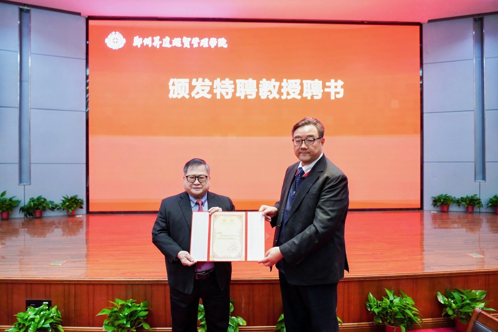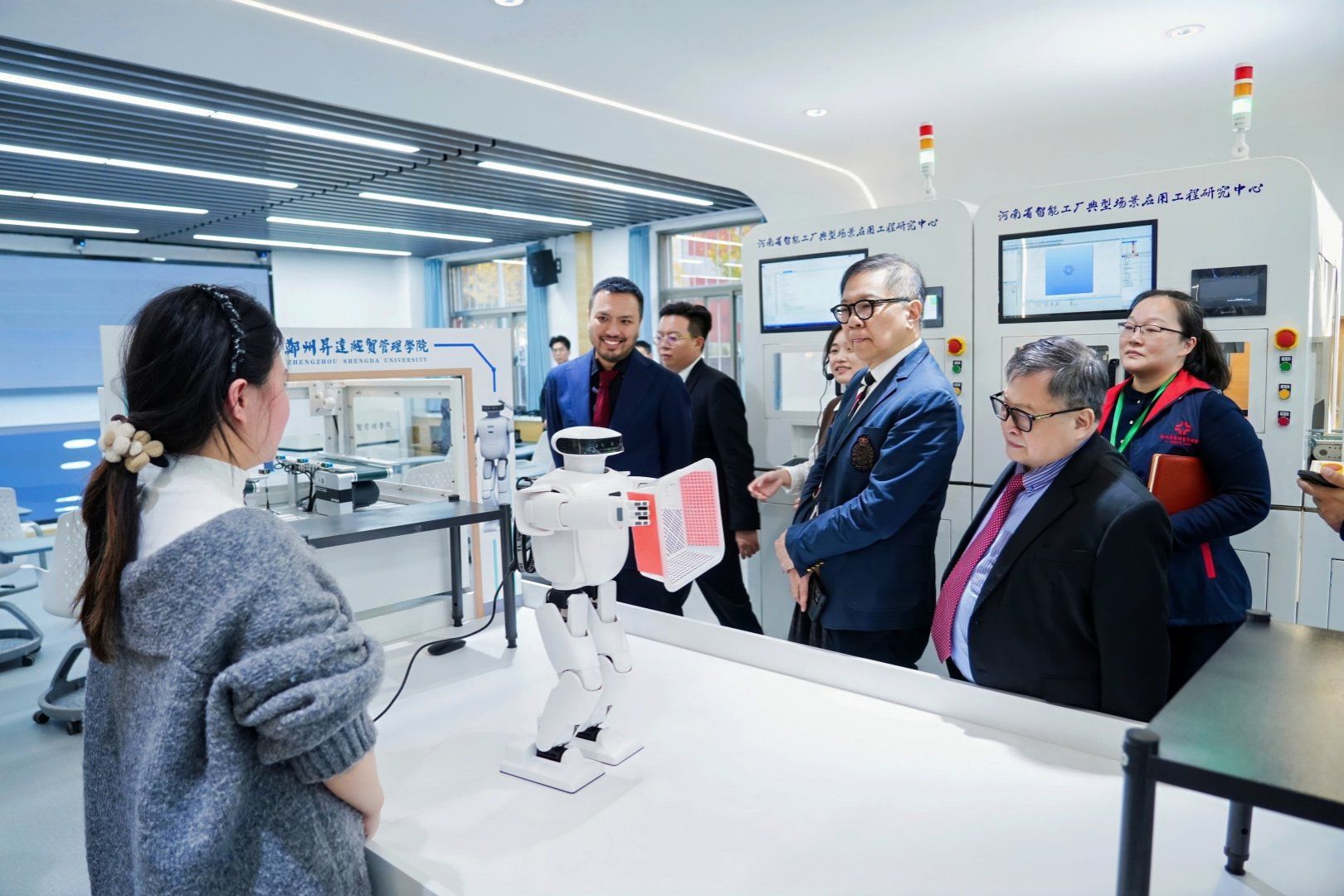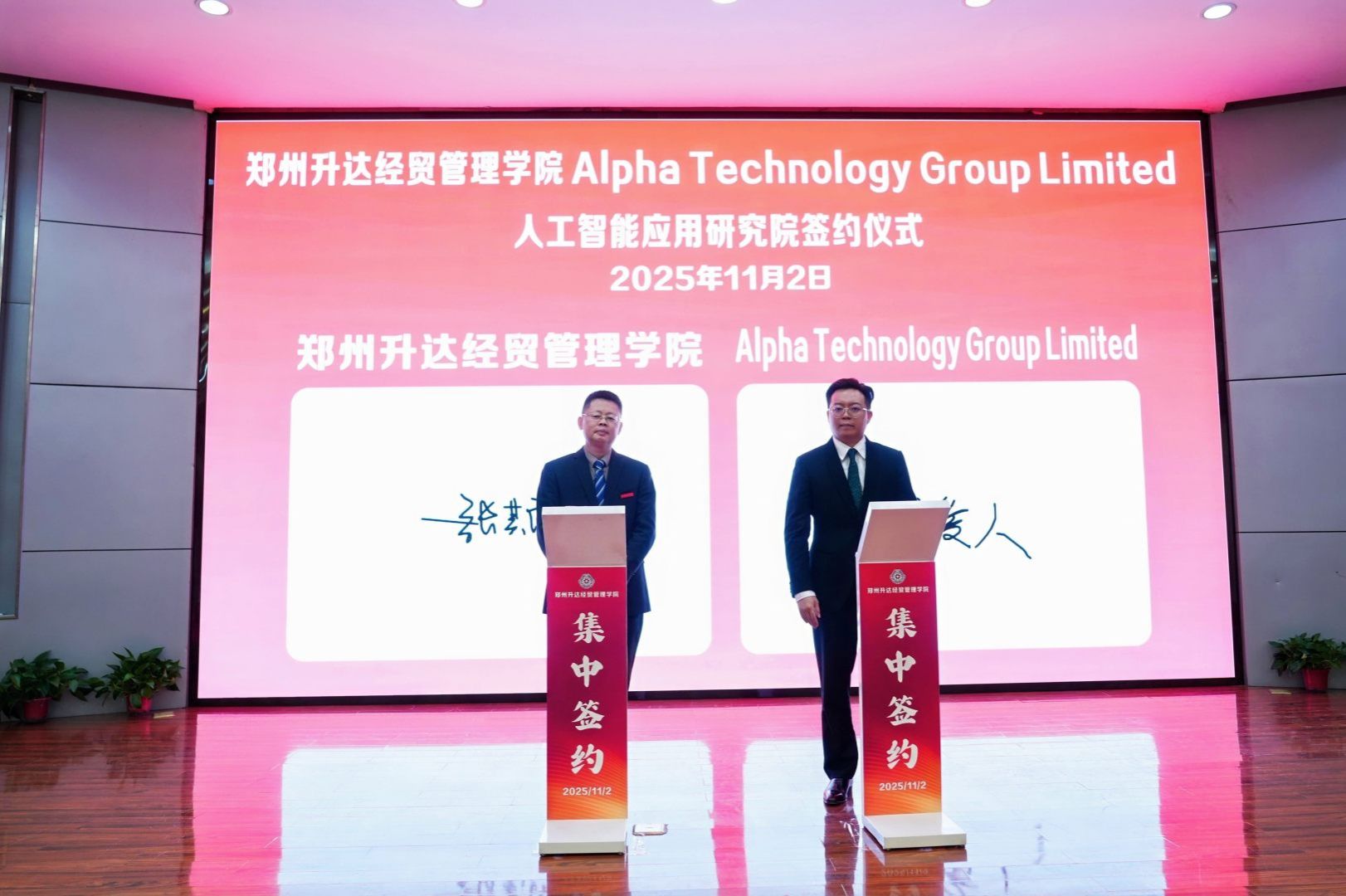 11月2日,我校校政企战略合作签约仪式在国际会议厅举行。河南省教育厅二级巡视员杨学勇,河南省机关事务管理局原副局长乔建宏,郑州市台资企业协会副会长林英源,龙湖镇党委副书记、镇长冯举涛,中共新郑市委智慧城市运行办公室主任王青,世界华商投资基金会主席马兴利,Alpha Technology Group Limited执行董事兼总裁子辰,Alpha Technology Group Limited副总裁曾俊人,Alpha Technology Group Limited副总裁助理叶林熙,世界华商投资基金会主席助理李想,全球卓越AI内容及AI教育平台主席陈玉基,华夏泛美传媒影业集团总裁邓海涛,香港添翼国际控股集团、河南海外联谊会理事主席徐阳,香港小圭出行有限公司董事长、河南省海外联谊会常务理事钟霖,华夏泛美传媒集团艺人经纪部主管林雨思,我校董事长王新奇,党委副书记、副校长张金安,党委委员、副校长张其武,登封校区党工委书记沈定军等校领导及相关部门、二级学院负责人、师生代表参加仪式,仪式由张金安主持。