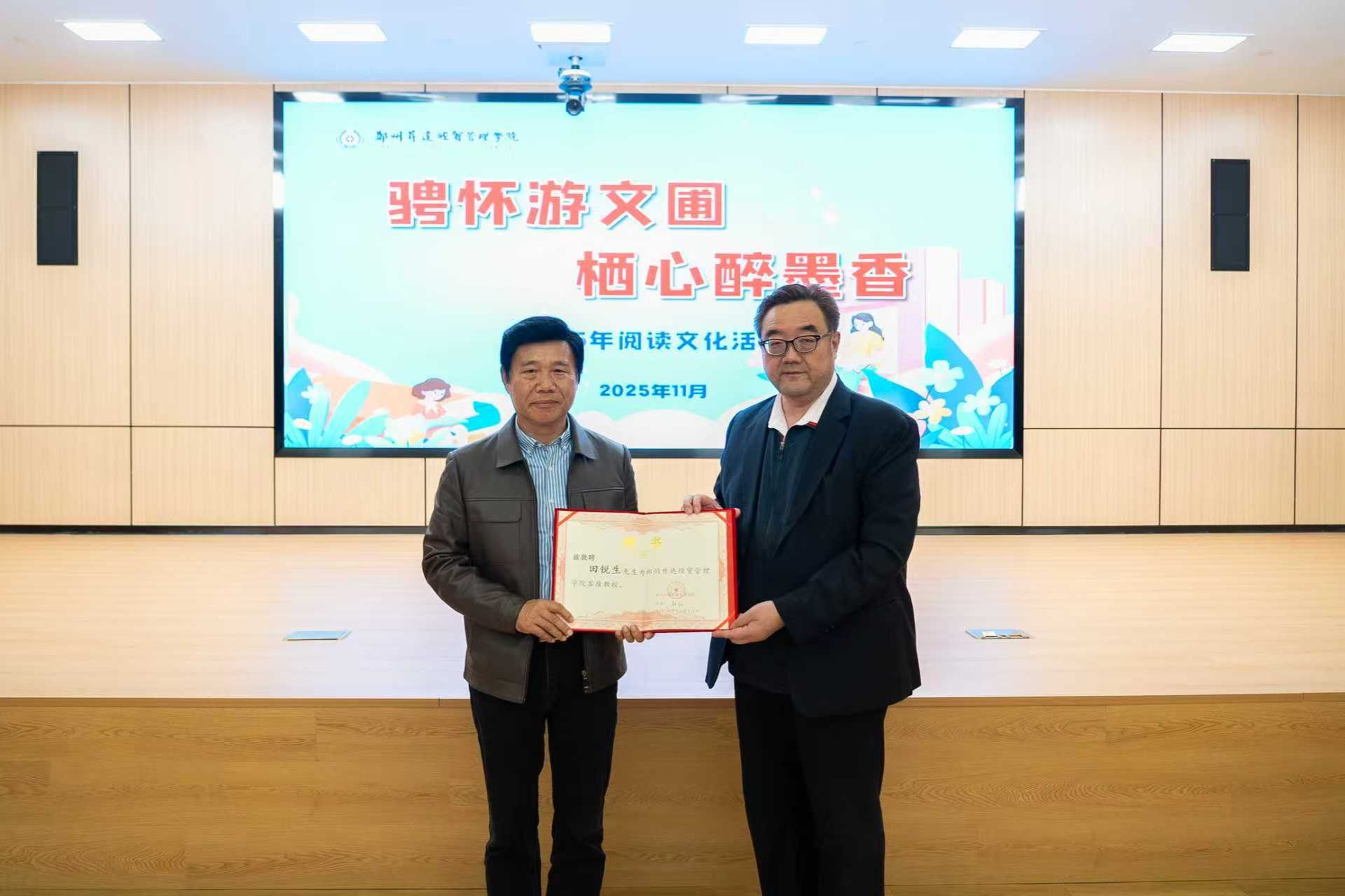韦杨建宣读了《郑州升达经贸管理学院2025年“骋怀游文圃,栖心醉墨香”阅读文化活动实施方案》,根据方案,学校决定在龙湖、登封两校区同步组织开展阅读文化活动。
