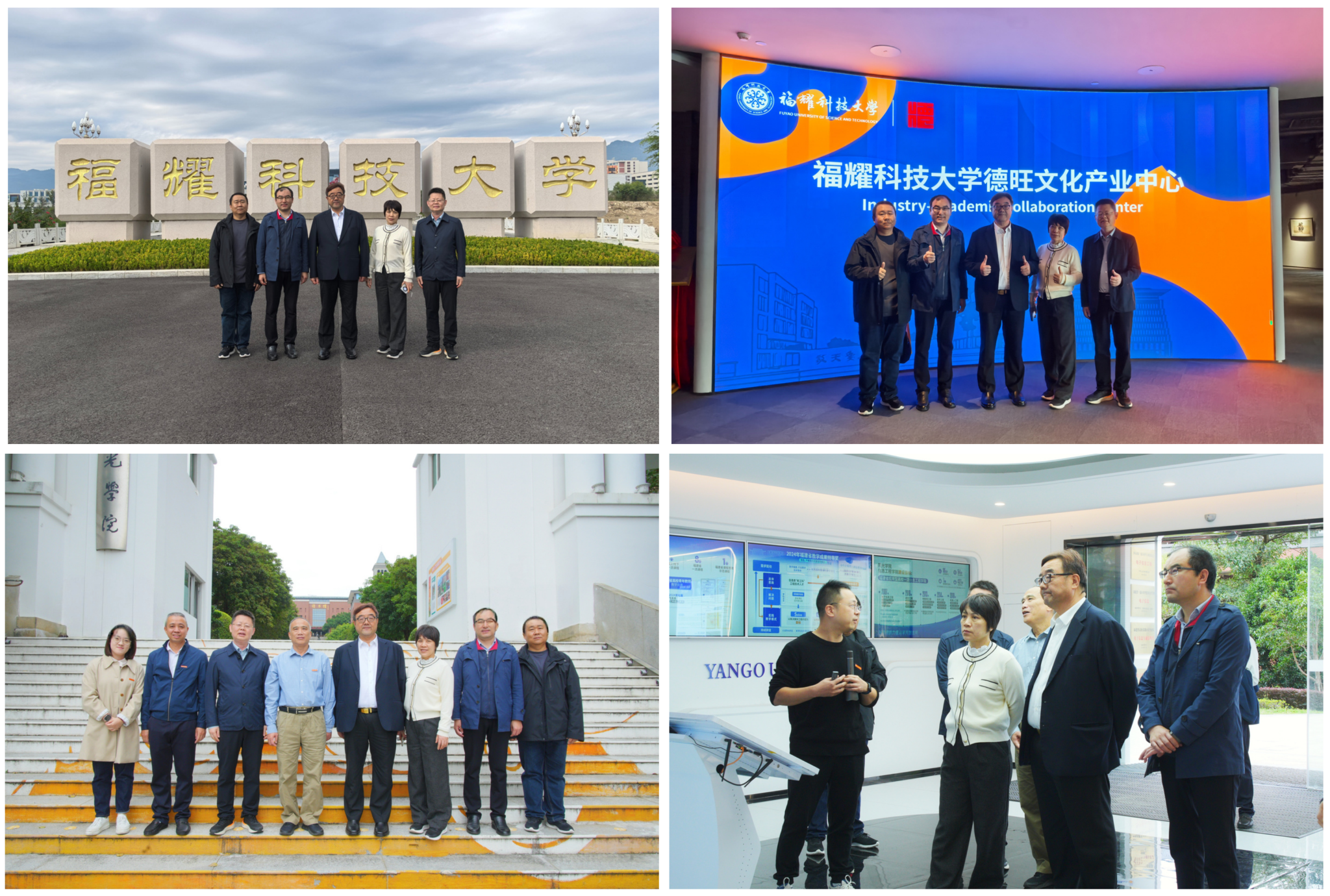 参会间隙,王新奇董事长带队参访了福耀科技大学和阳光学院,与相关校领导沟通交流学校建设管理经验。参观了福耀科技大学校园和图书馆,阳光学院综合展厅、信息工程学院实验室、AI综合技术实验中心,重点考察了人工智能与大数据实验平台的建设和智慧校园运行情况。