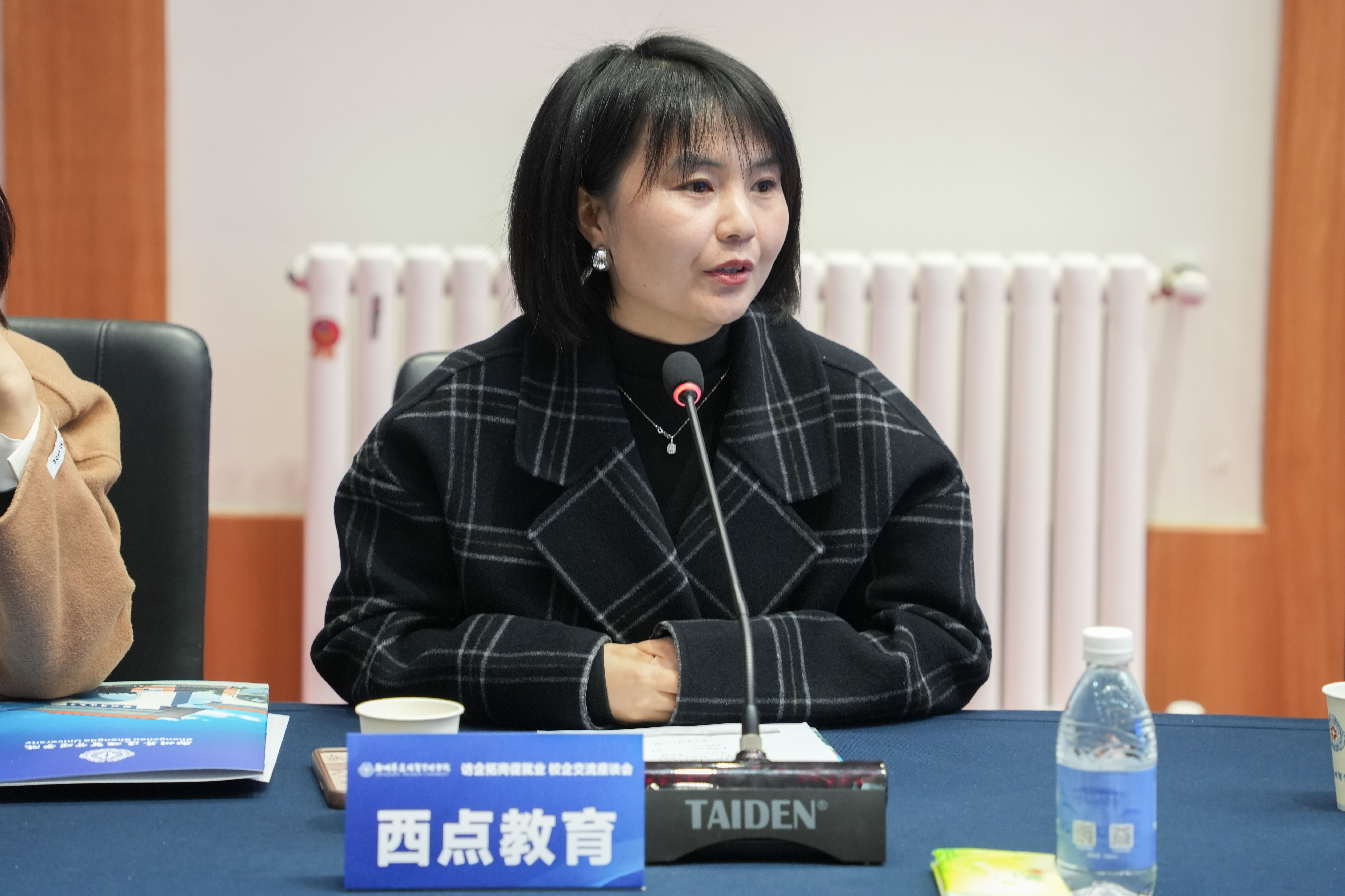 张欣代表学校致欢迎辞。她简要介绍了学校的办学历史、学科布局、人才培养特色及毕业生就业基本情况,对各企业长期以来给予学校就业工作的支持表示感谢,以此次座谈会为契机,她希望进一步深化校企协同育人,为企业输送更多优质应用型人才,实现校企互利共赢。对此她座谈会提出三点期待:一是精准对接需求,希望各位嘉宾畅所欲言,把企业的用人标准、岗位需求、技能要求讲深讲透,学校将据此进一步优化人才培养方案,让人才培养更对“胃口”;二是拓展合作维度,除了就业岗位供给,期待与各位在定制化人才培养、企业员工培训、应用型课题研发等方面开展更深层次合作,实现资源共享、优势互补;三是搭建长效机制,希望以此次座谈会为起点,建立常态化沟通机制,让升达成为企业稳定的人才储备基地,让企业成为升达学子成长的实践舞台。