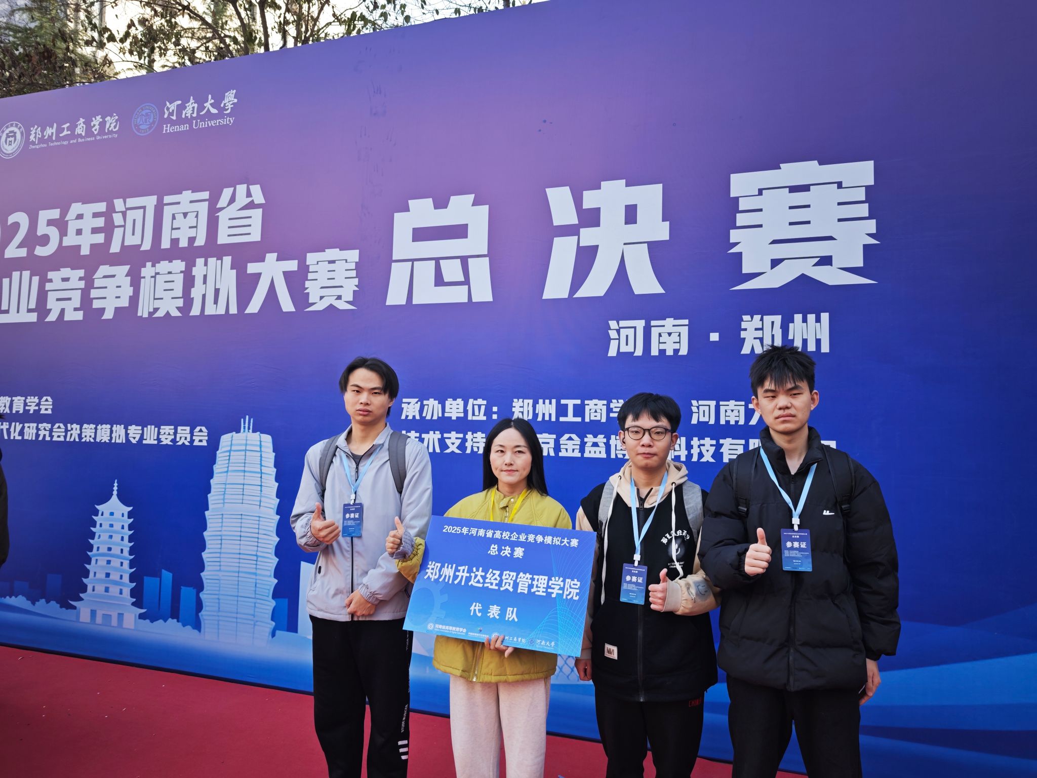 该项赛事由河南省高等教育学会指导,中国管理现代化研究会决策模拟专业委员会主办,是省内具有重要影响力的专业赛事。比赛设有多个竞赛赛道,通过多期决策模拟形式全面考察学生的专业能力。在为期两个月的备赛过程中,经济分析与创业管理教研室刘丽燕和王云两位指导老师全程为参赛团队提供系统性辅导,从规则讲解到模拟训练,为比赛奠定了坚实基础。教研室主任徐娜娜说,此次获奖是我院在商业模拟决策类赛事领域取得的重要突破,不仅是对团队成绩的肯定,更是激励我院学生在大赛中不断前行的动力。