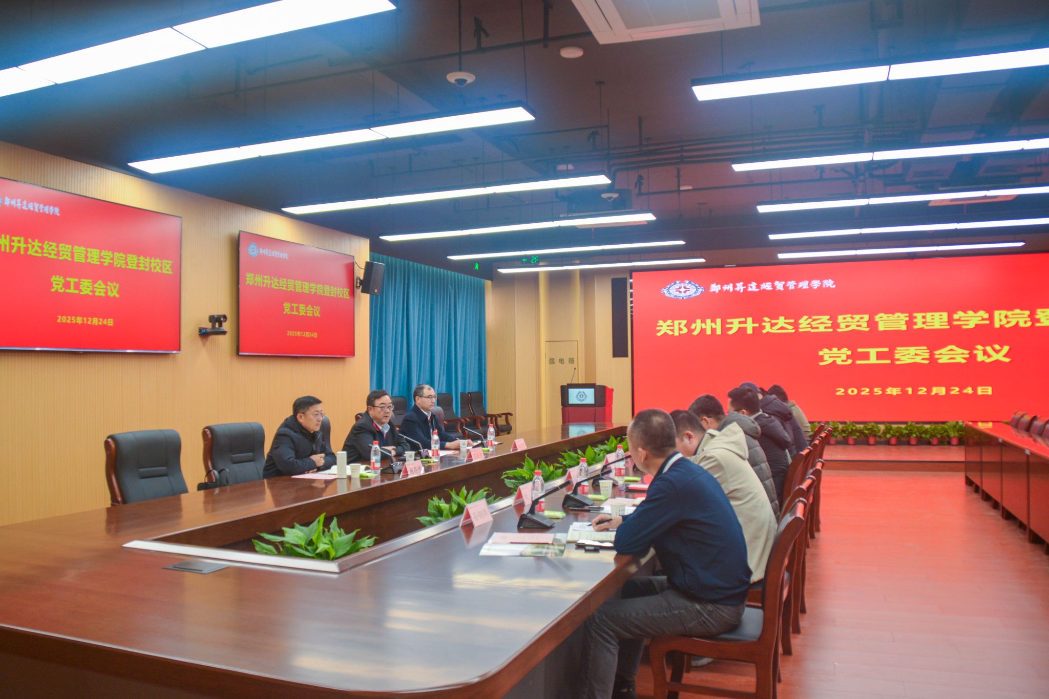 12月24日,登封校区党工委在多功能会议室召开会议。董事长王新奇、登封校区党工委书记沈定军以及董事会办公室主任杨存博,登封校区全体党工委委员、各职能部门主管及副主管参加会议,会议由沈定军主持。