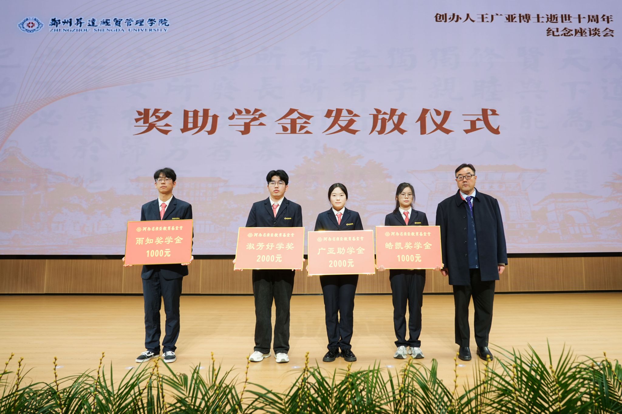 为弘扬王广亚博士“慈善育人、惠泽四方”的精神,会议举行了河南省广亚教育基金会奖助学金颁发仪式。本学期,共有433名学生获得广亚助学金、淑芳好学奖、皓凯奖学金及雨知奖学金。更令人感动的是,李朝、王慧杰等十余位爱心人士现场追加捐赠52万元善款,支持学校教育事业,董事长王新奇博士为其颁发了捐赠证书。