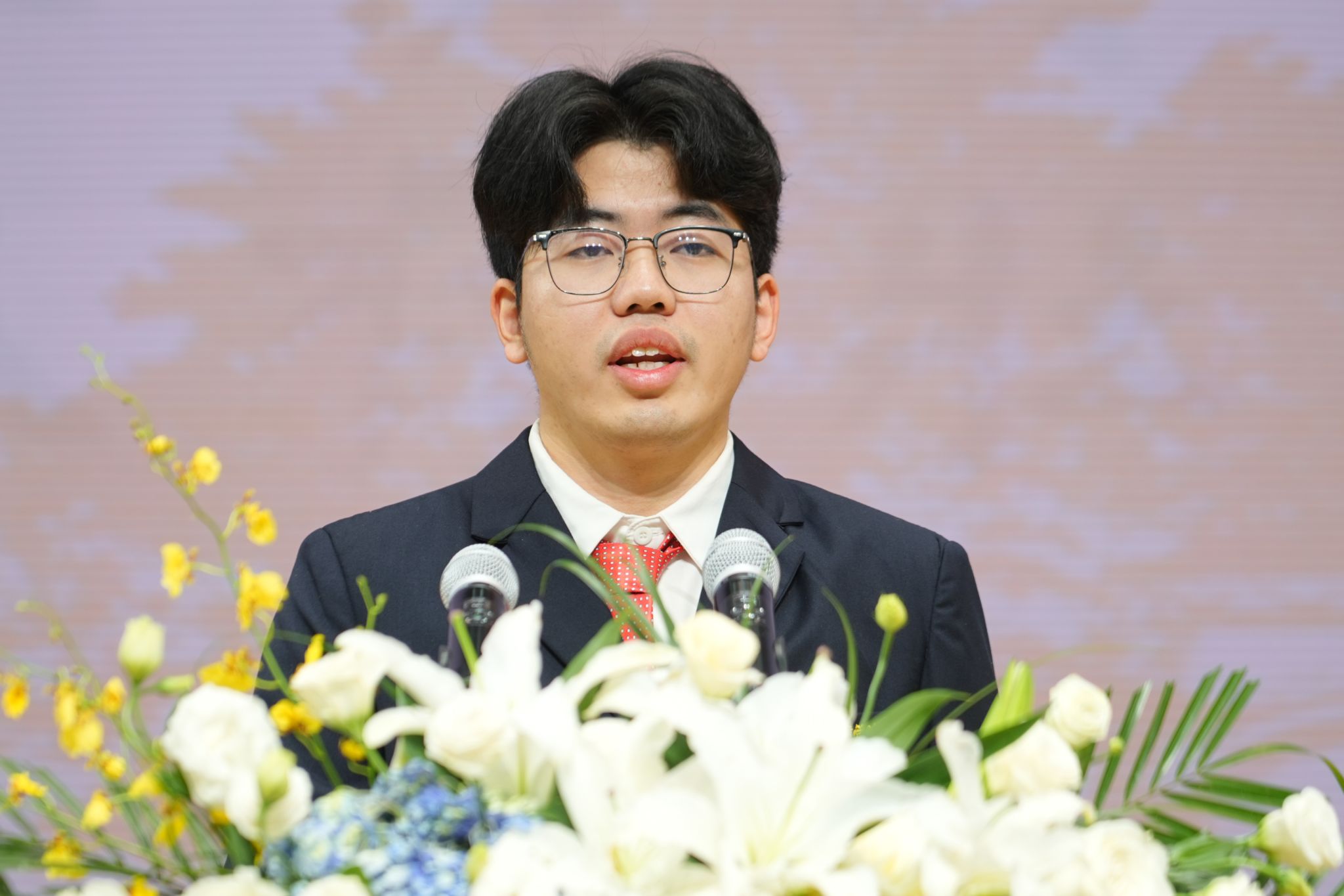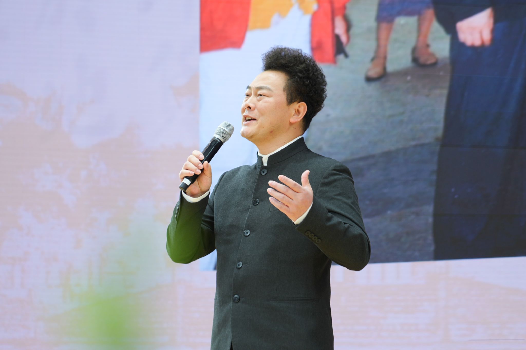 “师生礼赞”——艺术学院教师陈家宁、在校生代表杨文豪同学从不同角度讲述了创办人教育思想在教与学中的生动实践。陈家宁老师深情追忆了创办人当年为艺术学院倾注心血、关爱师生的感人往事,特别强调了先生对美育的坚定信念与无私大爱。杨文豪同学作为河南省广亚教育基金会受助学生代表发言,他深情讲述了基金会的帮助如何改变了自己的成长轨迹,对基金会通过精准资助和鼓励全面发展,让创办人的办学初心薪火相传的善举表达了由衷的敬意与感激。