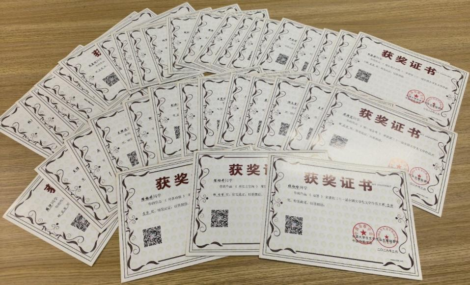 赛事征稿启动后,汉语言文学教研室严格按大赛标准组织教师初审,精选60篇稿件参赛。最终,文法学院38篇原创作品脱颖而出,荣获一等奖3篇、二等奖13篇、三等奖22篇;杨冬冬、谢秋、张世琪、王佳、韩笑君、祁小艳、袁若琳、张姣、张欣煜、吕凌云等十位教师获评“优秀指导教师奖”。相较去年,学院在作品质量、参赛专业覆盖面、指导教师获奖数量等方面均实现质的提升。
