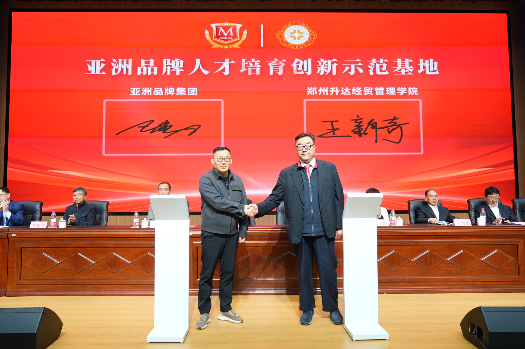 开幕式现场,在与会人员的共同见证下,亚洲品牌集团创始人兼CEO王建功先生与学校董事长王新奇博士代表双方正式签署了校企战略合作协议。未来,双方将在产教融合等领域开展更深层次的合作。