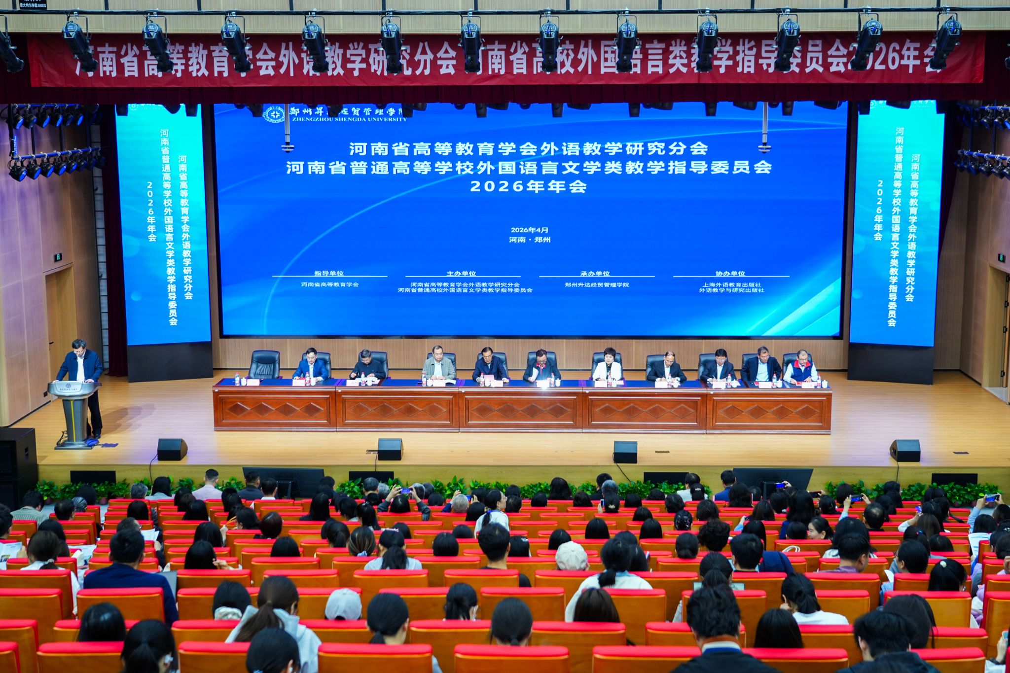 为推动河南省高等外语教育高质量发展,4月18日,由河南省高等教育学会外语教学研究分会与河南省高等学校外国语言类教学指导委员会联合主办、我校承办、上海外语教育出版社和外语教学与研究出版社协办的2026年年会,在我校新图书馆第三报告厅隆重召开。