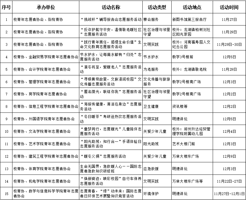 各级团学组织、青年志愿服务团体: