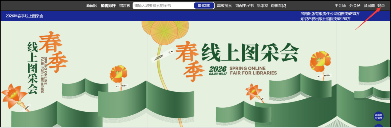 1、主会场:主要展示重点出版社书目,直接点击出版社名称即可进入选书界面。