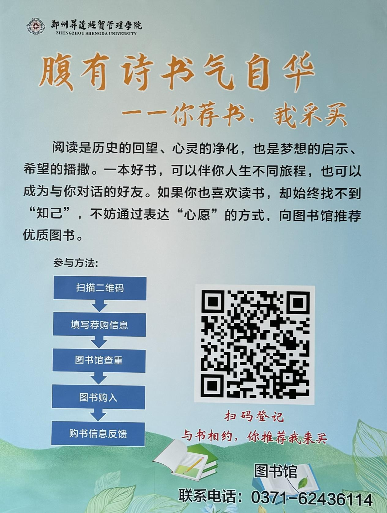 春光作伴好读书,期待您的热情参与!让我们携手共建更贴合师生需求的馆藏资源,让书香浸润校园。