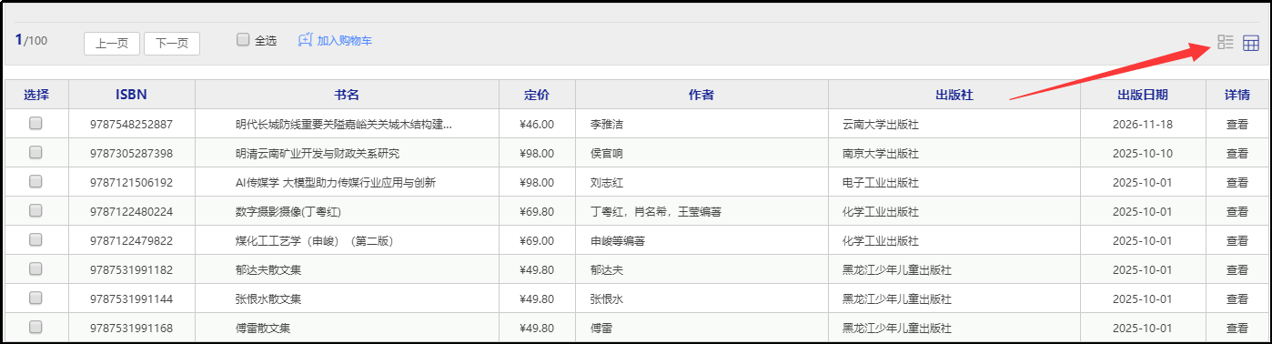 1.1、平台可按图书的出版时间、定价排序。也可按价格区间、出版时间段、重点图书【即图书馆关注的重点出版社】进行筛选。