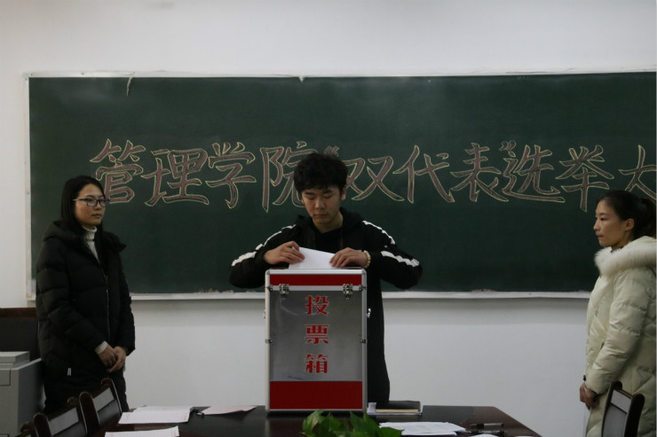 为迎接郑州升达经贸管理学院第一届团员学生代表大会,管理学院于2017年12月28日下午2:30在综合楼215会议室举行了双代表选举大会。与会人员有:行政秘书兼团委书记许广庆老师、团委常务副书记齐利利老师,团学会干部及各班班委。本次会议由许广庆老师主持。