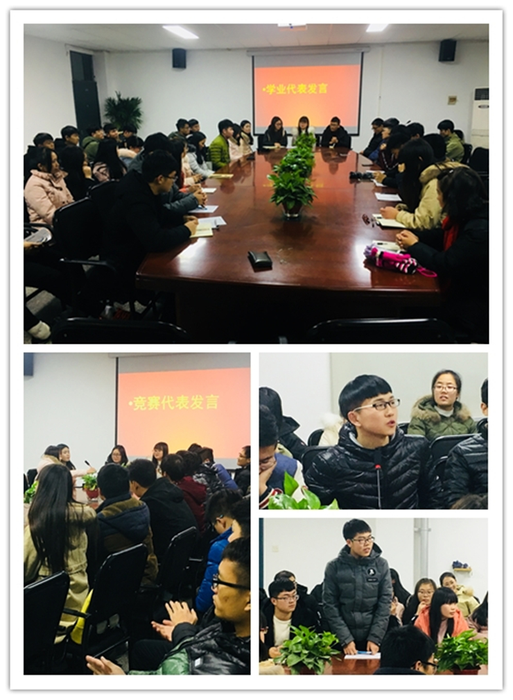 为践行党的十九大报告精神,养成好学习惯,争当学习榜样,立志成才。1月4日晚于资讯楼104会议室开展我院“好学月”系列活动之学业、竞赛交流分享会。特邀15级竞赛代表张鹤、申政杰;16级学业代表卢露、王攀等优秀学长学姐来此为学弟学妹们分享交流学习、竞赛经验。