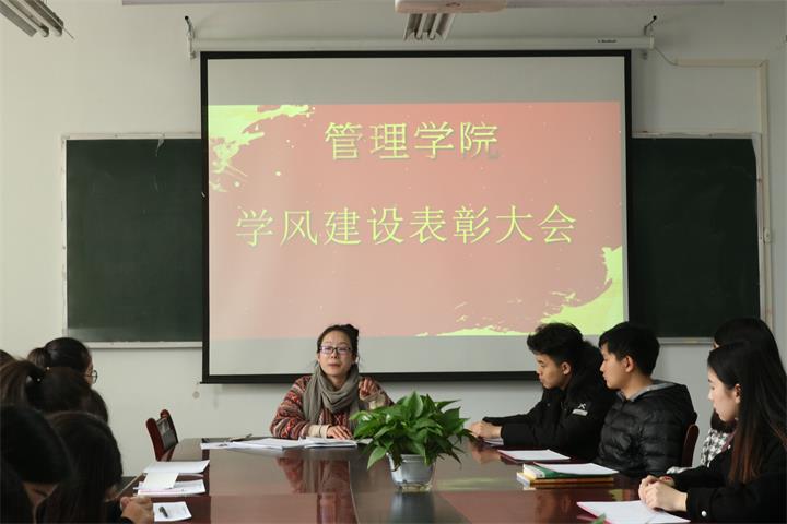 为促使全院学生进一步端正学习态度和生活态度,以奋发有为、开拓进取的精神投入到新学期的学习生活中,营造严谨、勤学、上进的生活氛围和学习风气。管理学院于2018年3月7日在综合楼215教室举行了管理学院学风建设表彰大会。与会人员有:教学秘书朱影影老师以、各班学艺股长和部分好学先进个人。本次会议由朱影影老师主持。