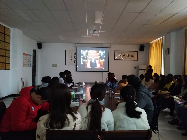 国人瞩目的全国两会于2018年3月3日开幕,同学们热议两会,掀起学习两会的热潮。3月6日中午12点10分,文法学院团委在道镕楼513教室组织学生干部集中观看两会视频。