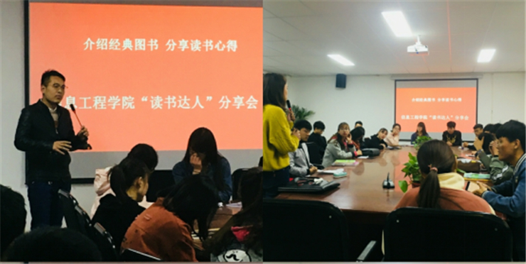 4月4日,各年级选取“读书达人”在资讯楼104会议室进行优秀图书分享:其中计科一班推荐图书为《小王子》,失去了才懂得珍惜,遗失了才知道美好。我们都想拥有自己美丽的世界,都想现在未来都是美好的。但是,怎么可能呢?我们不能留住时间,不能让现在成为不朽,但我们可以尽力珍惜现在,尽力珍惜即将随着自己的寻找而流逝的现在。16通信一班代表向听众推荐了《美的历程》,它并不是一部一般意义上的艺术史著作,重点不在于具体艺术作品的细部赏析,而是以人类学本体论的美学观把审美、艺术与整个历史进程有机地联系起来,点面结合,揭示出各种社会因素对于审美和艺术的作用和影响,对中国古典文艺的发展作出了概括的分析与说明。。计科二班代表推荐图书《百年孤独》,更有《毛泽东传》《追风筝的人》《平凡的世界》等一系列优秀图书。