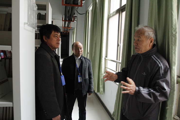 图书馆分馆建设也是王主任最为关注的评建工作重点之一。在晁馆长等人引领下,王主任一行又到建工学院校区图书馆分馆实地考察。黄东教授还模拟专家访谈形式咨询了设置图书馆分馆的初衷、分馆的文献资源配置和服务对象等。交谈过程中,王主任还详细了解全校教学单位资料室的建设情况,晁馆长全面做了解答。