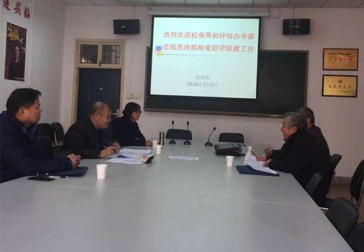 3月2日上午,校教学质量检测与评估中心董清民教授、刘福泉教授一行,莅临思政部检查迎评促建工作的开展情况。思政部主任朱慈华教授、副主任袁雅莎教授和党支部书记窦峰副教授参加会议。