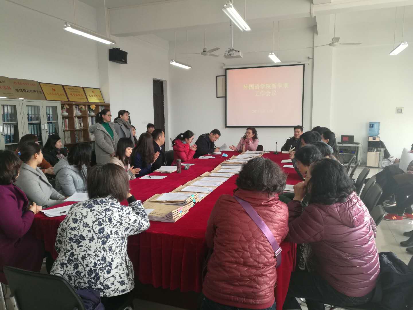 新学期伊始,外国语学院在院会议室,组织全体教职员工认真学习我校赴北京参加本科教学合格评估培训会会议精神。会议由张梦院长主持。