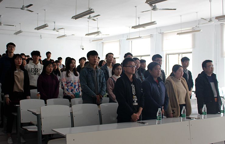 在主持人刘鑫的宣布下,大会开始。首先进行第一项,全体起立,奏中华人民共和国国歌和共青团团歌。