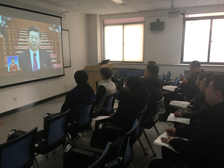 3月3日至3月5日,我院党总支组织广大师生通过网络,电视直播,报刊,微博,微信等多种途径及时关注全国“两会”动态,学习贯彻两会精神,“两会”已成为当下校园里的热门话题。全体学院领导班子在教学3号楼112室集中观看全国两会开幕式;我院教师以教研室为单位分别在办公室观看全国两会开幕式;我院广大学子在家中、在公交车上、在宿舍等各个场所观看收听全国两会开幕式。