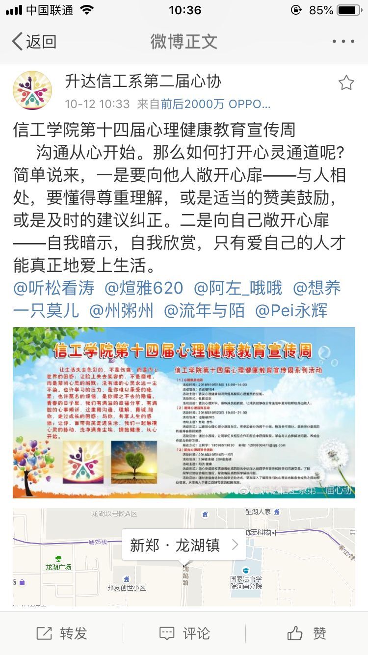 为进一步加强我院大学生心理健康教育工作,促进学生了解心理健康知识,增强大学生的自我心理保健意识,养成正确的心理健康观念,培养健全的心理素质,构建和谐校园。在学校心理健康教育中心的指导下,学院团委的协助下,信工学院心理协会于10月15日——10月26日期间,在我校开展信工学院第十四届心理健康教育宣传周系列活动。