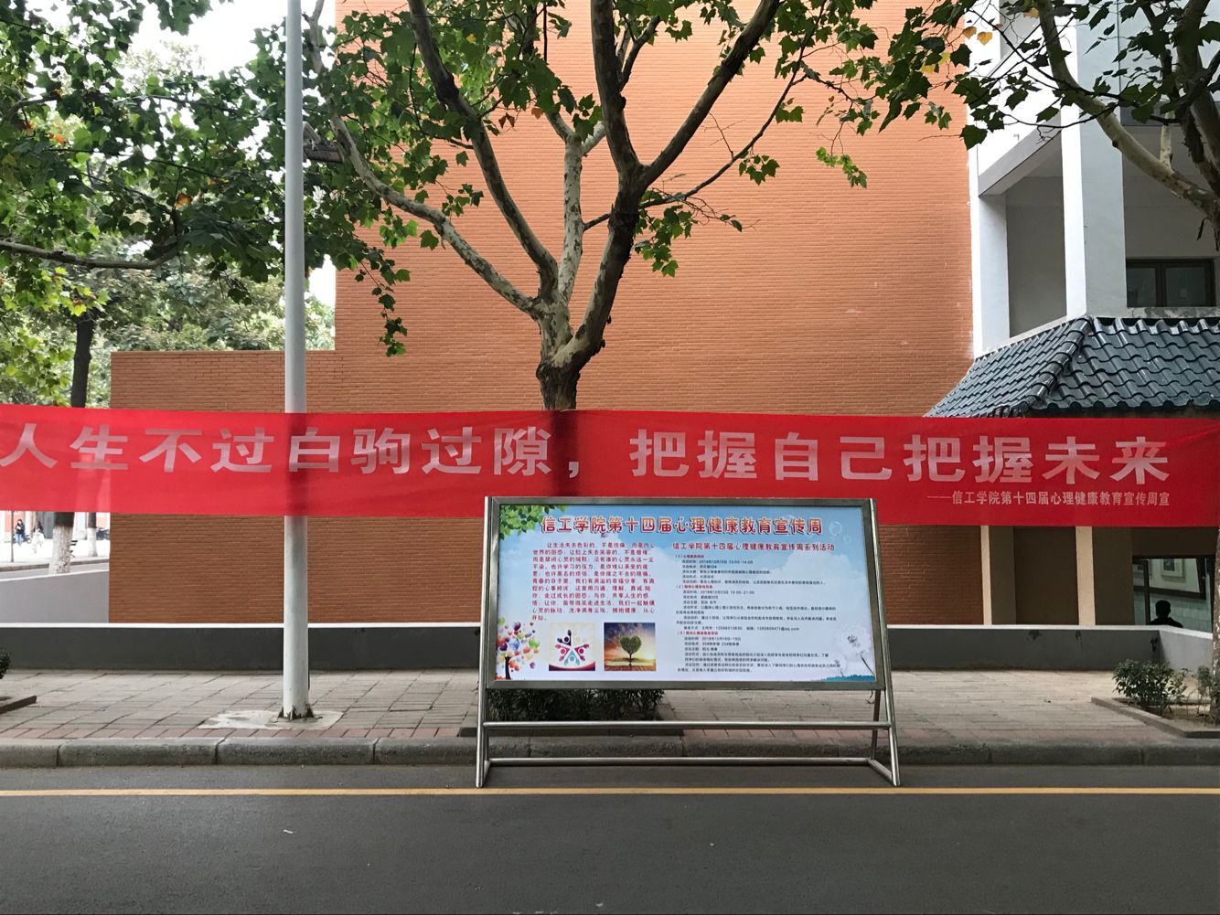 信工学院第十四届心理健康教育宣传周活动的主题为:“不负昭华,出彩青春”,本次系列活动包含心理委员培训、趣味心理互动游戏以及阳光心理进宿舍等活动。为了更好地促进活动的顺利开展,我院通过微博、微信、条幅和展板等线上线下的形式,向我校学生进行宣传教育。我们希望通过本次心理健康教育宣传周系列活动,为学生提供心理方面的帮助和服务,让学生能够在活动中了解自我,悦纳自我,调控自我,实现自我,并超越自我,在学习和生活中,能够不负青春,不负梦。