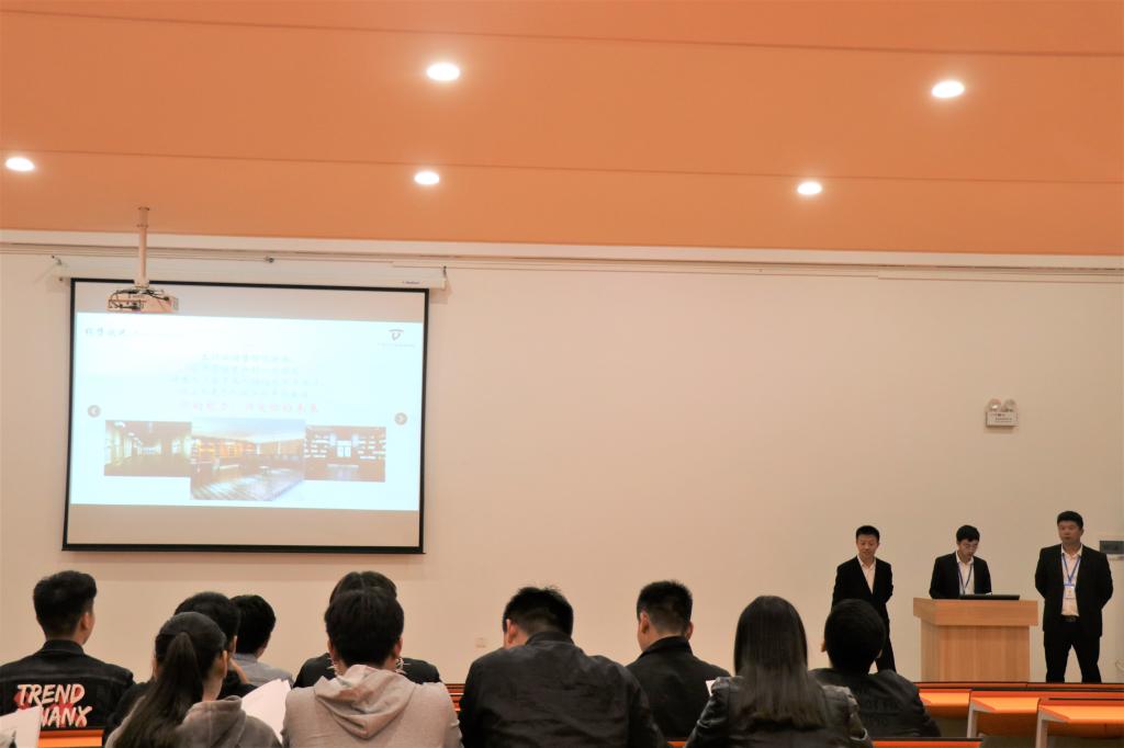 招聘会伊始,张鹏先生就其公司优越的地理位置、规模、所拥有的设备以及公司近几年所取得的优异成绩等做了介绍,并说明公司未来的发展前景一片光明。紧接着张鹏先生又为毕业生讲解了公司所招岗位人员的薪资待遇及福利等信息,让同学们对其公司有了初步的了解。最后,张鹏先生为学生分发求职登记表,并向同学们发出诚挚邀请,就此此次招聘会圆满结束。