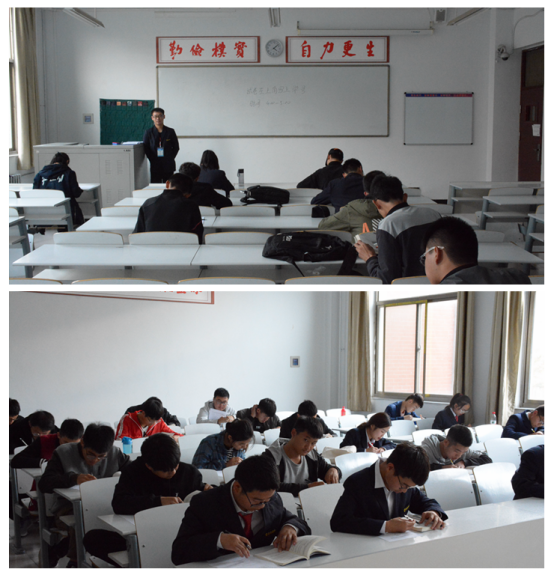 本次考试是考查2018届大一新生对《学生手册》的认识,本次考试采用笔试和开卷的方式。开考后,监考人员把考卷分发下来,同时也和同学们讲考场秩序,考试期间,同学们认真答题,奋笔疾书。考试题目主要设有填空、选择、判断、简答、分析等,涉及学生管理、评优评先、资助、降留级、学位颁发、操行成绩等多方面内容。