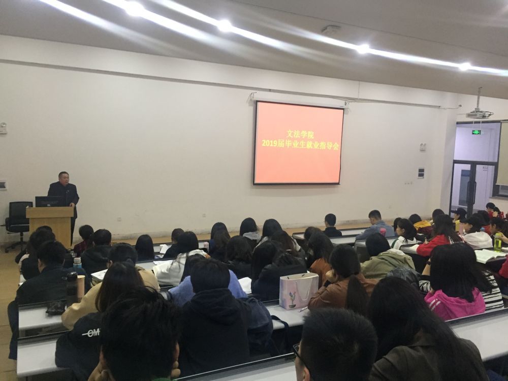 2019届毕业生就业指导会是文法学院直面就业问题、更新就业观念、创新就业模式,从而为提高就业质量召开的针对性会议,把毕业生的思想统一到准确定位自我发展方向,早日实现自我人生价值之上。段院长和杨书记的讲话深入浅出,贴切实际,具有强烈的针对性和可操作性,引发了毕业生的强烈共鸣,现场掌声不断,同学们受益匪浅,此次活动圆满结束。
