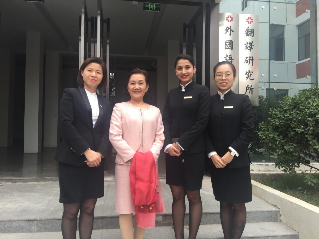 下午三点半1号楼208教室座无虚席,120名大四毕业生聆听了苏达女士的讲座。苏达女士从自己家乡尼泊尔求学谈起,又谈到在澳大利亚国际旅游与酒店管理学院进修学习,后来到中国郑州裕达国贸国际酒店就职;苏达女士结合自身海外求学经历和目前就职感受着重谈了外语专业学生职业生涯规划方面的建议;苏达女士还介绍了裕达国贸国际酒店的情况并希望在外国语学院毕业生中招聘一名经理助理协助她开展工作。