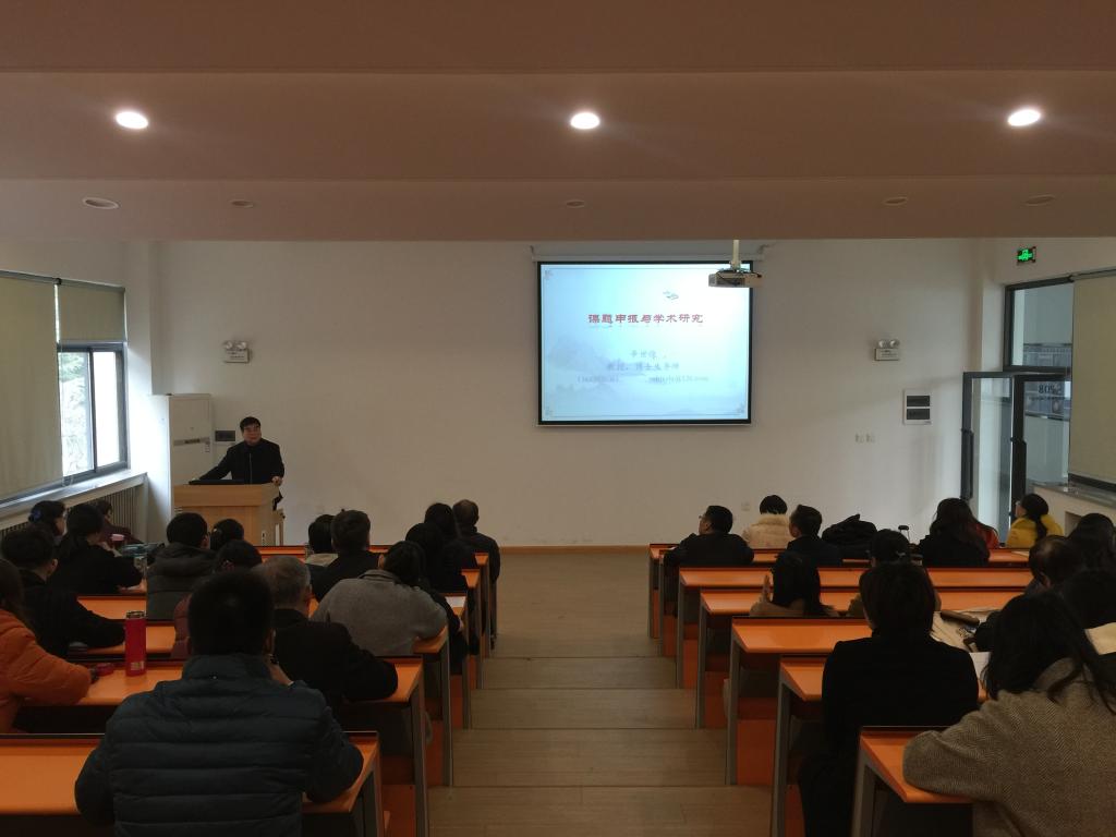 辛教授根据自己极为丰富的科研生涯,结合国家级课题评审专家的审阅经历,从以下三个方面为大家传经送宝:选好题目是关键、论证与研究基础、功夫在诗外。首先,辛教授指出在选题时要把握三个要点:一是找准合适的选题;二是重视课题的创新性;三是把握课题的可行性。然后,辛教授从课题组成员的构成、研究现状、内容结构框架、前期研究成果、经费安排等七个方面,就论证与研究的基础做了详实的解读;最后,辛教授结合自身科研的丰富阅历,对从事科研工作的学术积累、研究方向选择、问题意识的养成等方面,鼓励大家“有信仰不放弃,发扬钉钉子精神,久久为功。”