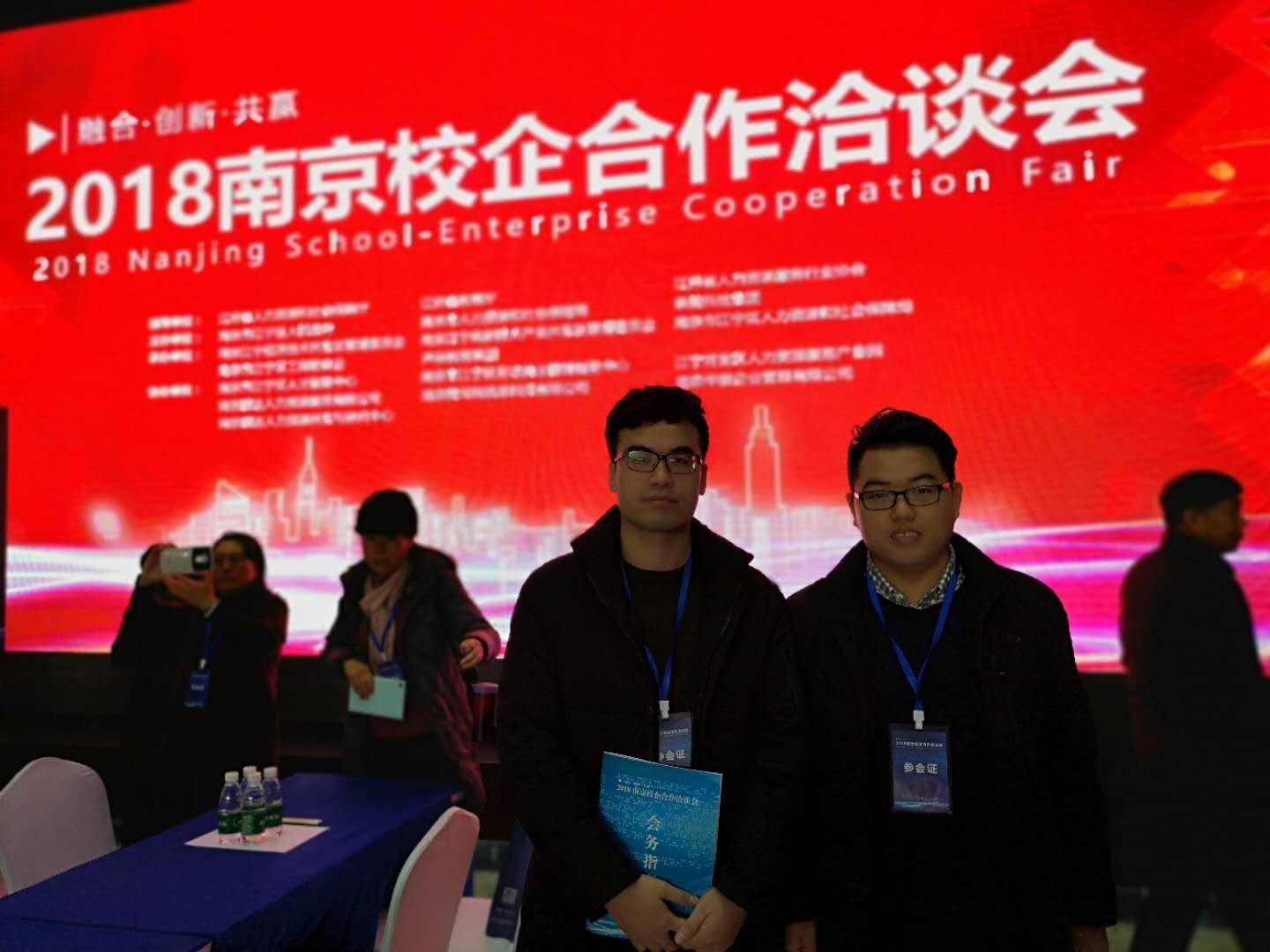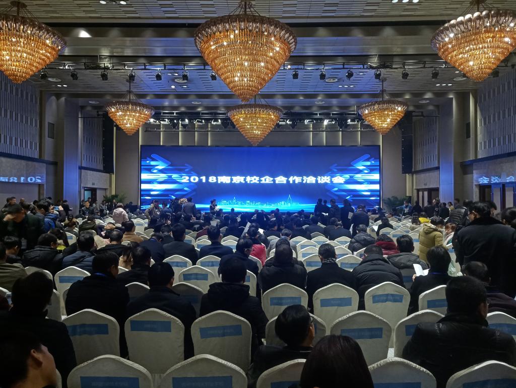 2018年12月14日,信息工程学院王保进、宁珂老师参加了由南京市江宁区人民政府、南京市人社局、泰盈科技集团主办的“融合·创新·共赢”——2018南京校企合作洽谈会。本次大会汇聚了全国212所高等院校、职业技术学院与南京地区367家企业。