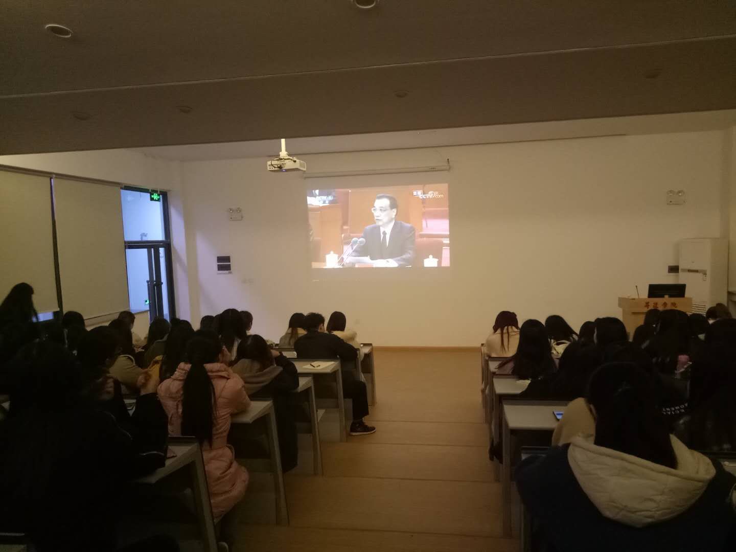 12月20日晚上6点30分,外国语学院组织学生党员、拟发展对象、培养对象等在内的80余人在1号教学楼208开展“党员学习月”“三看”学习活动的第二看——观看庆祝改革开放40周年大会视频。