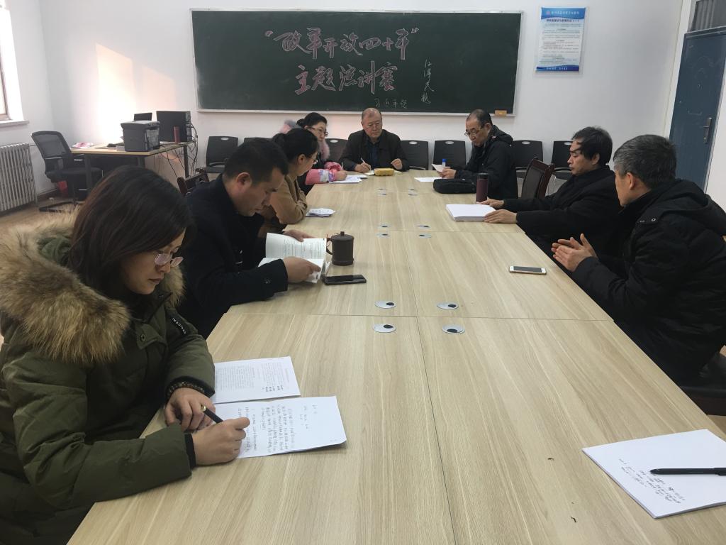 首先,朱主任总结了党的十九大以来思政部在思政课教学过程中推进“三进入”的基本情况。为了扎实推进“三进入”活动的开展,思政部制定了《思政课教学贯彻党的十九大精神和深入推动习近平新时代中国特色社会主义思想进教材、进课堂、进学生头脑的意见》,充分发挥思政课课堂教学作为“三进入”主渠道、主阵地的作用。同时,结合十九大精神的学习和贯彻,思政部开展了“万人宣讲进高校”、思政课活动周、“庆祝改革开放四十周年”演讲比赛、教师深入学生宿舍等活动,并组织大学生开展专题社会调研,带领学生深入泰山村、黄帝故里思政课教学基地参观调研等系列活动,扎实推进“三进入”活动走深走实。