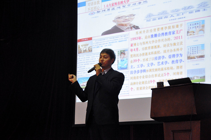 2019年1月3日下午,创新创业教育学院在龙湖报告厅组织举办本学期毕业生就业辅导讲座。本次讲座特邀河南省教育厅就业中心就业创业服务部主任文正建主讲。创新创业教育学院办公室主任汪梁出席讲座,来自各二级学院的师生代表500余人聆听了讲座。