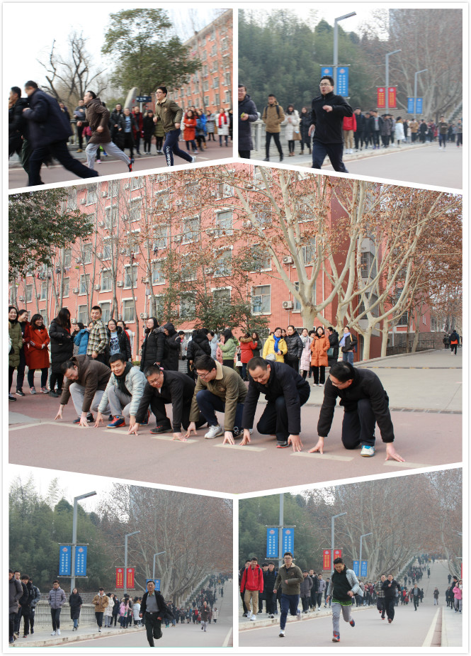 运动会前期几次党政联席会议对策划方案进行了反复斟酌、面向全体工会会员征求了意见、对可能发生的情况进行了充分考虑和谋划。一点半全体教师在黄河母亲像集合,张志银老师向大家宣布活动注意事项,拉开运动会序幕。学生志愿者协助清空路线、提供计时记次、裁判服务,过往学生纷纷驻足为老师加油助威。