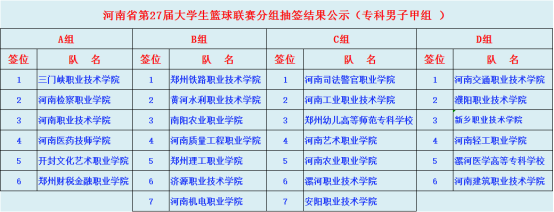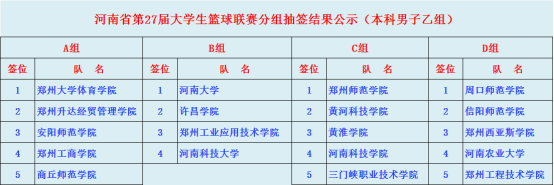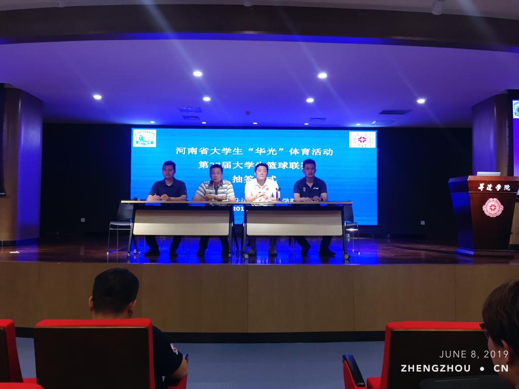 抽签仪式于下午3点在双创大讲堂举行。仪式由我校体育学院院长丁英俊教授(河南省校篮办常务副主任、河南省学生体育总会篮协秘书长)主持。出席会议的领导有:校篮办培训部部长董胜利教授、校篮办竞赛部部长、本次比赛裁判长王永强教授、河南省学生体育总会篮球协会竞赛部部长张凡涛等,所有队的教练员都参加了抽签仪式。