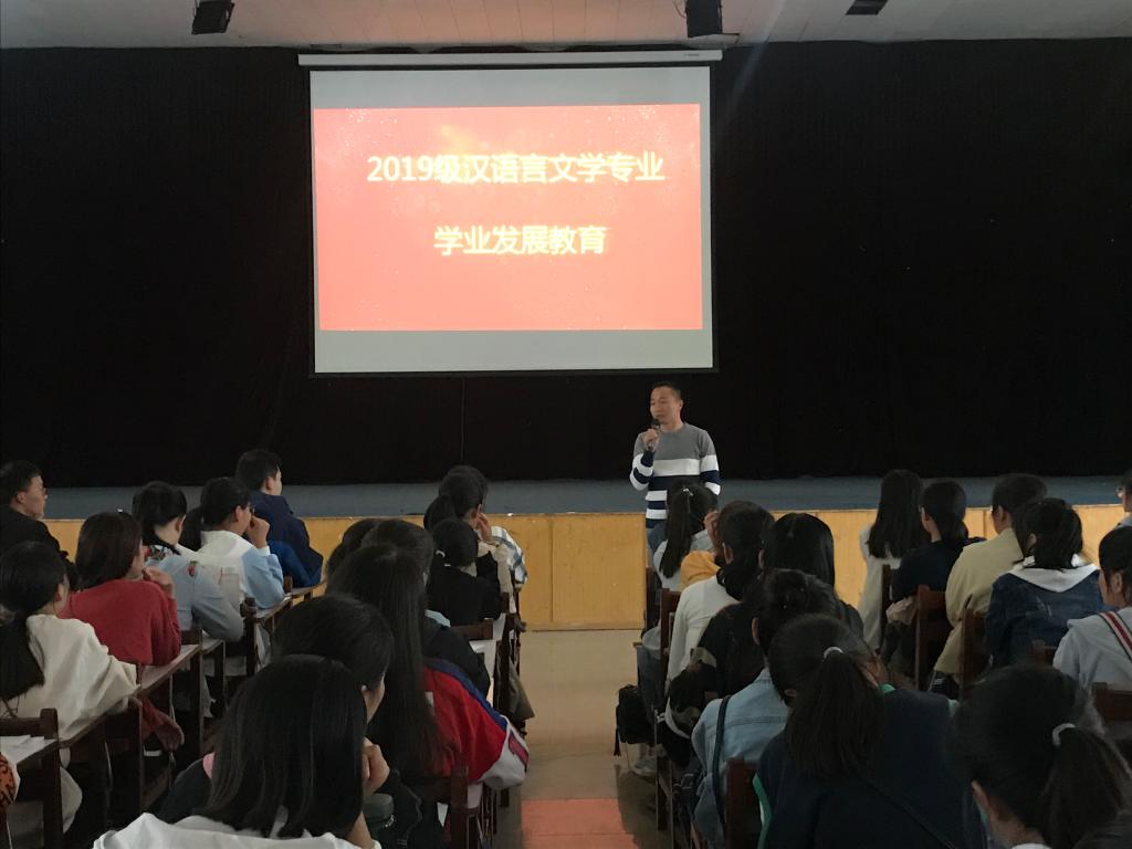 为使汉语言文学专业新生树立专业观念,培养专业意识,尽快适应升达学习生活,文法学院9月19日下午组织汉语言专业开展新生学业发展教育报告会。本次教育知识讲座由赵严俊老师主持,文法学院赵宁、吕书宝、杨春艳、司慧慧、王敏凤等专业老师出席,2019级汉语言文学专业全体新生参加报告会。