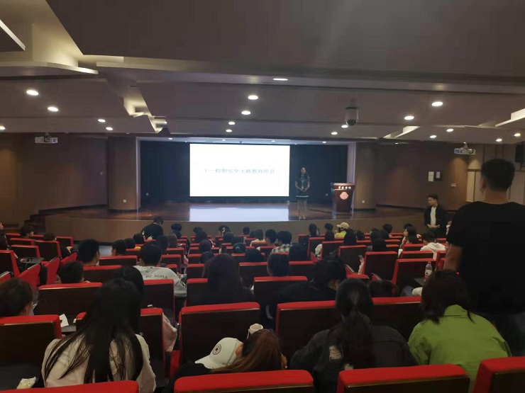 会议上行政秘书许广庆号召全院各班级开展国庆假期安全主题班会。会议从以下几个方面开展。第一 ,放假时间为10月1日—10月7日。学生不得擅自提前离校,10月7日晚19:30前务必返校,如有特殊原因不能按时返校者,应及时向辅导员报告并办理请假手续。第二,全体同学应自觉遵守法律、法规和学校的有关规定,努力维护校园秩序和升达形象,多做弘扬校誉之事。第三,离校前要关好教室、宿舍门窗,切断电源,妥善保管贵重物品。第四,要高度重视旅途安全,不能以任何名义组织旅游,个人出游应结伴同行,地势险峻或安全措施不落实的地方不得前往;讲究饮食卫生,防止食物中毒;要提高警惕,远离有安全隐患的人员(如:涉及邪教、传销、诈骗、黄、赌、毒等人员),防止上当受骗,防止被别有用心的人利用。第五,回家后要向亲人、长辈等问好,如实汇报在校表现。多做力所能及的事务,以实际行动感谢亲人的养育。六, 留校学生要自觉遵守学校的作息时间,充分利用假期时间多做有意义的事情;要保持警惕,共同维护校园的秩序与安全。