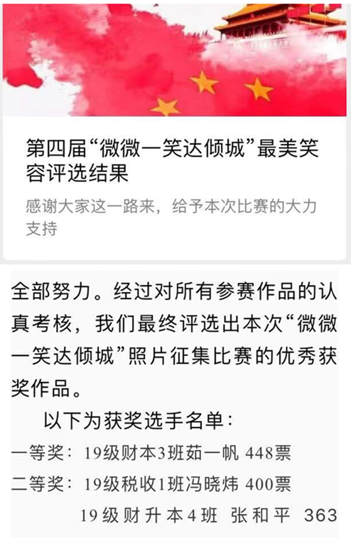 会计学院通过心理辅导站微信公众号公布本次活动评选结果