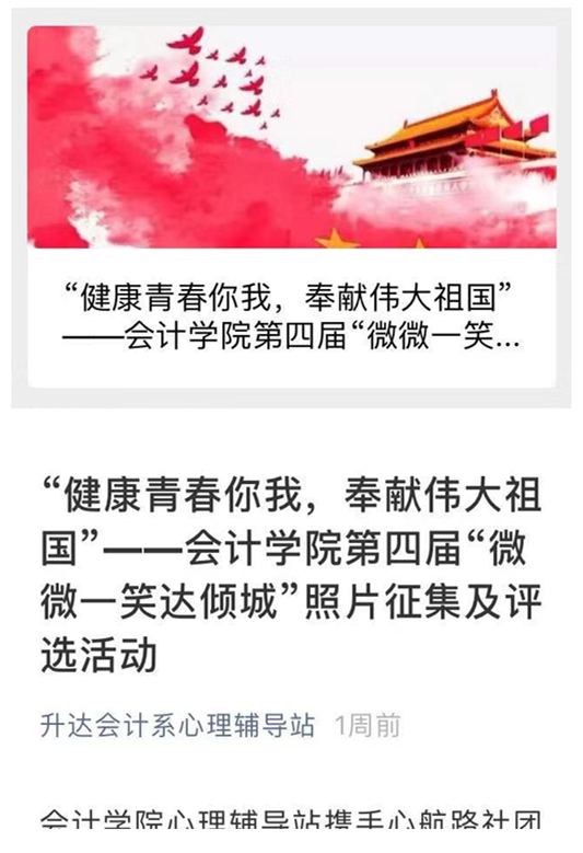 会计学院在升达会计学院心理辅导站微信公众号上进行心理健康活动周主题活动宣传